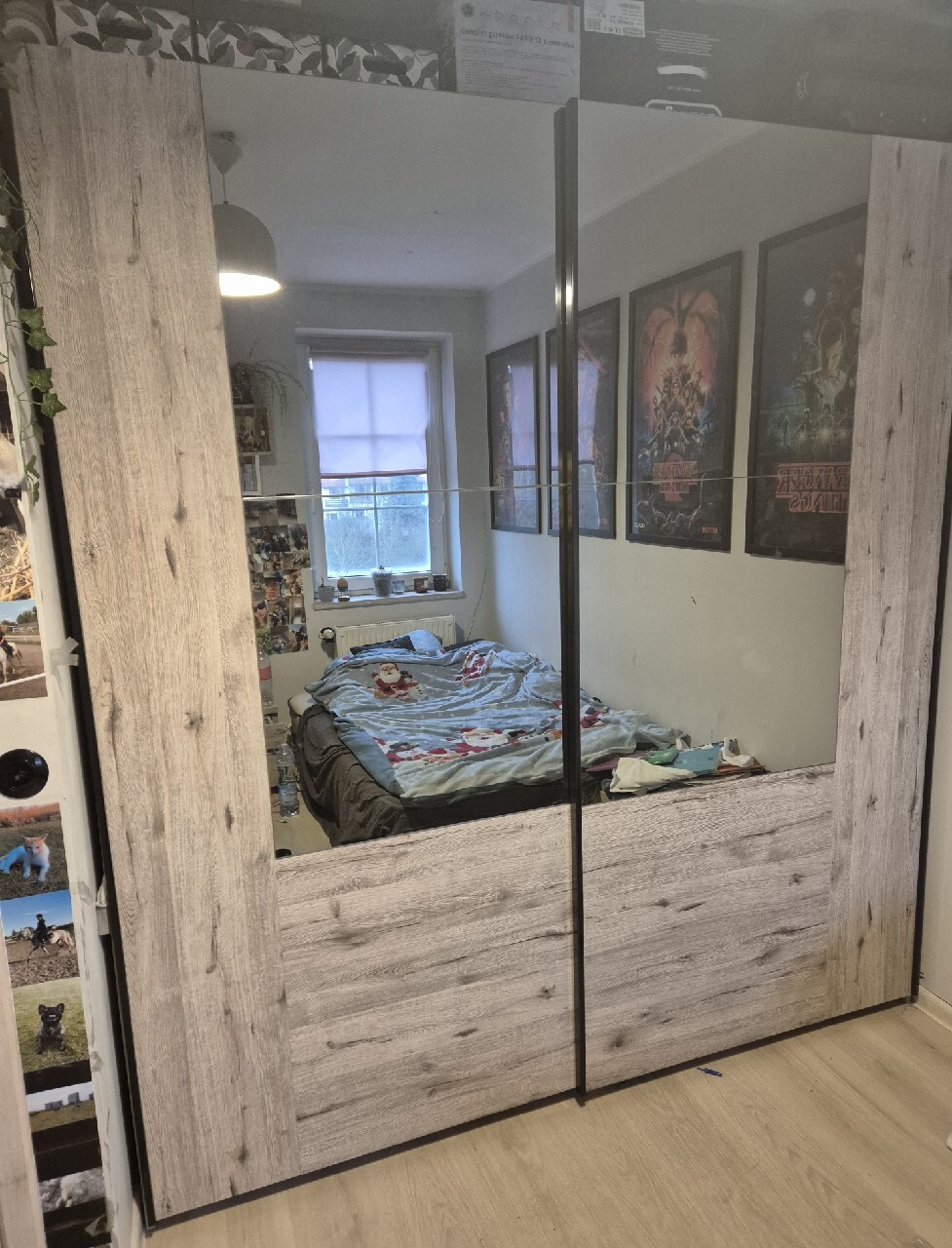 - раздвижной гардероб с размерами зеркала: высота 218 см, ширина 200 см, глубина 66 см