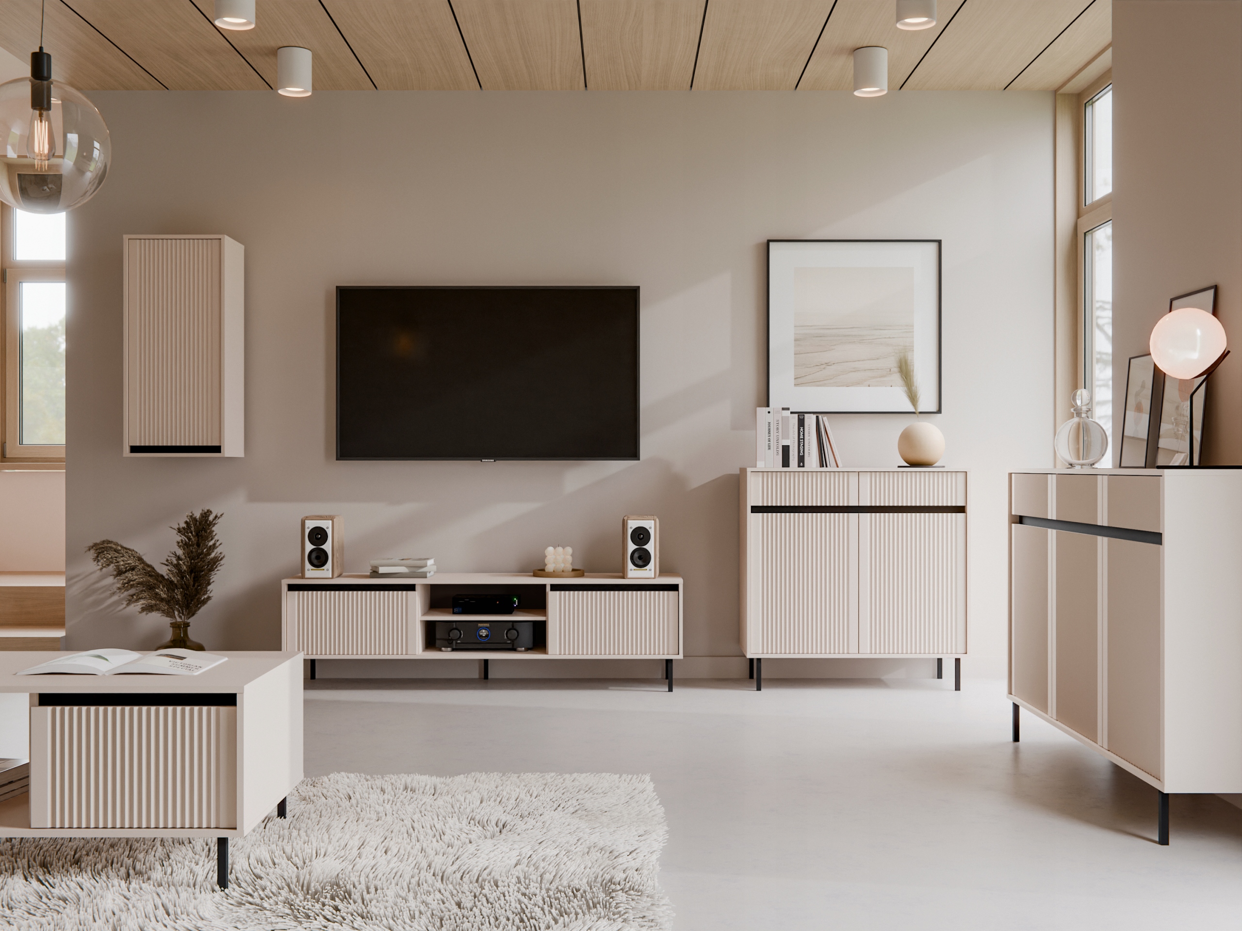 Мебельный набор висящего шкафа Осаки + шкаф RTV + комомет