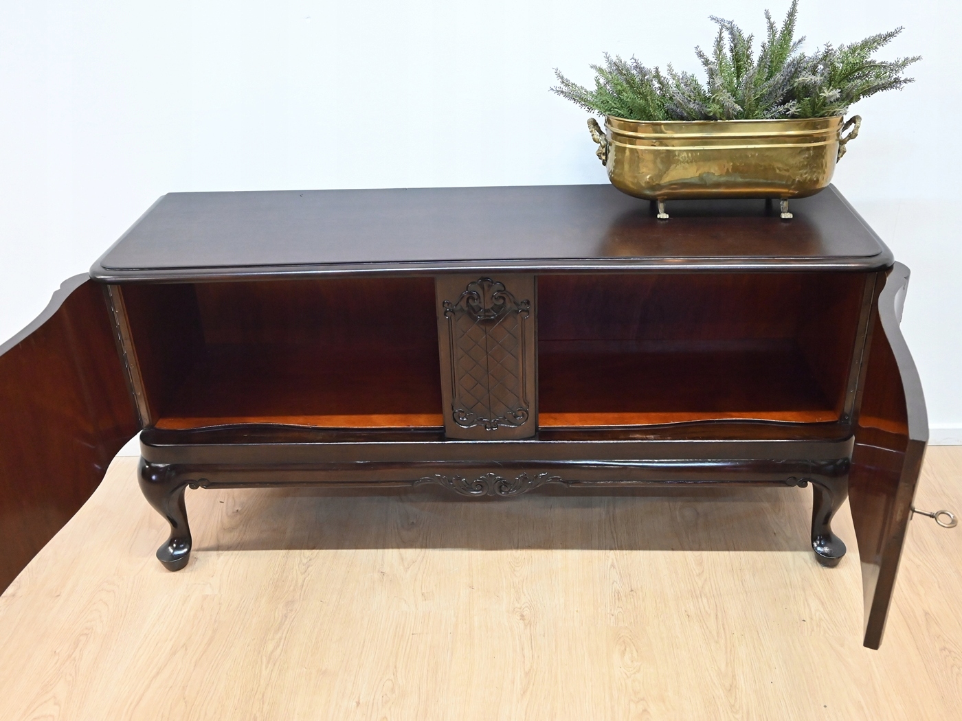 Низкий шкаф на изогнутых ножках.