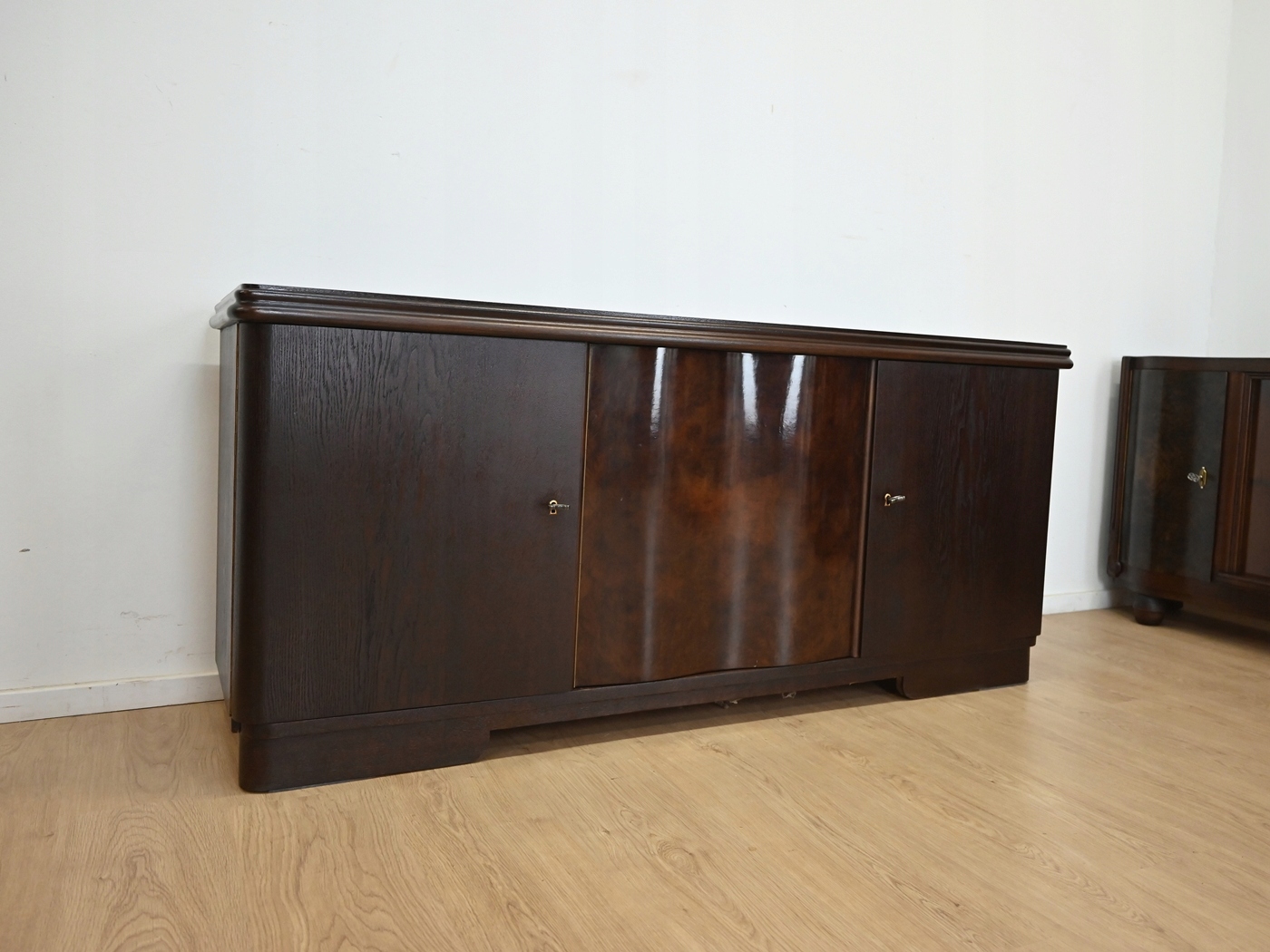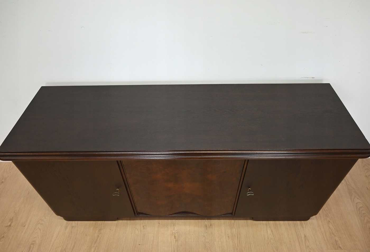 В очень хорошем состоянии. Мебель готова к использованию. Обновились внешние поверхности и интерьер мебели. Мебель уже старая и следы прошлого, не влияющие на ее эстетическое восприятие, являются доказательством подлинности мебели. Шкаф можно сразу разместить в квартире.
