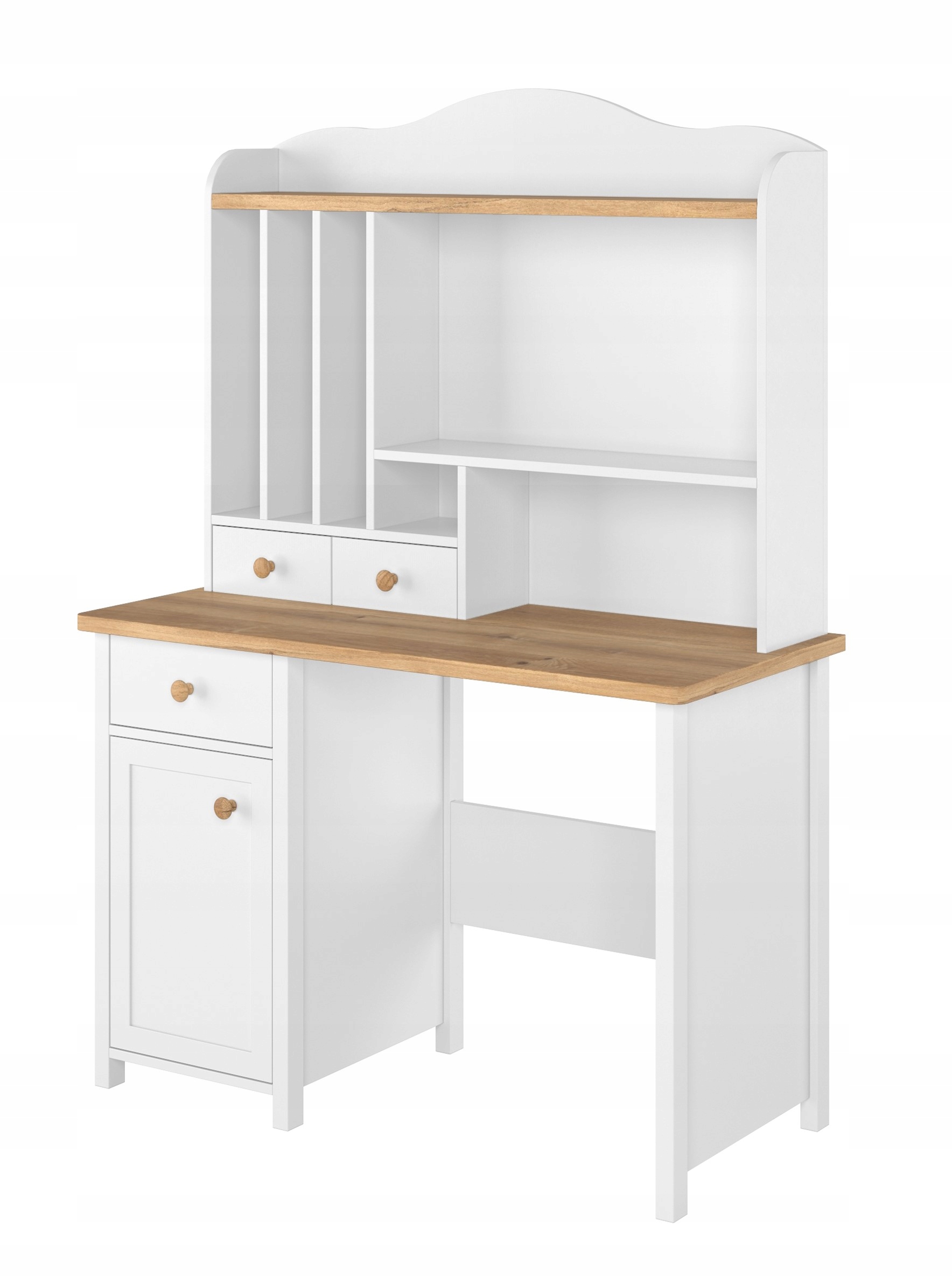 Удобный в использовании, эргономичный письменный стол с просторной столешницей, тумбой с дверцей и удобным ящиком.
