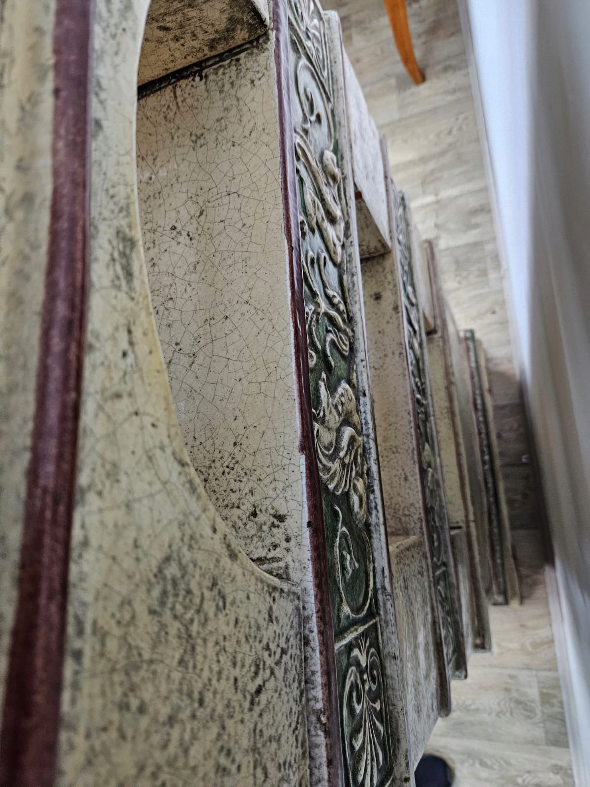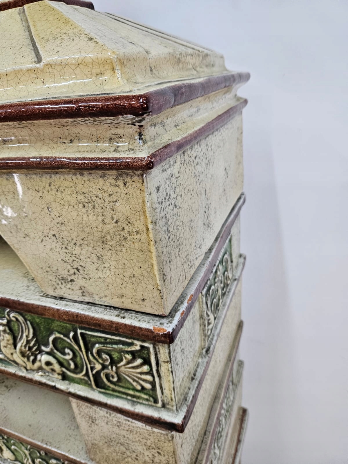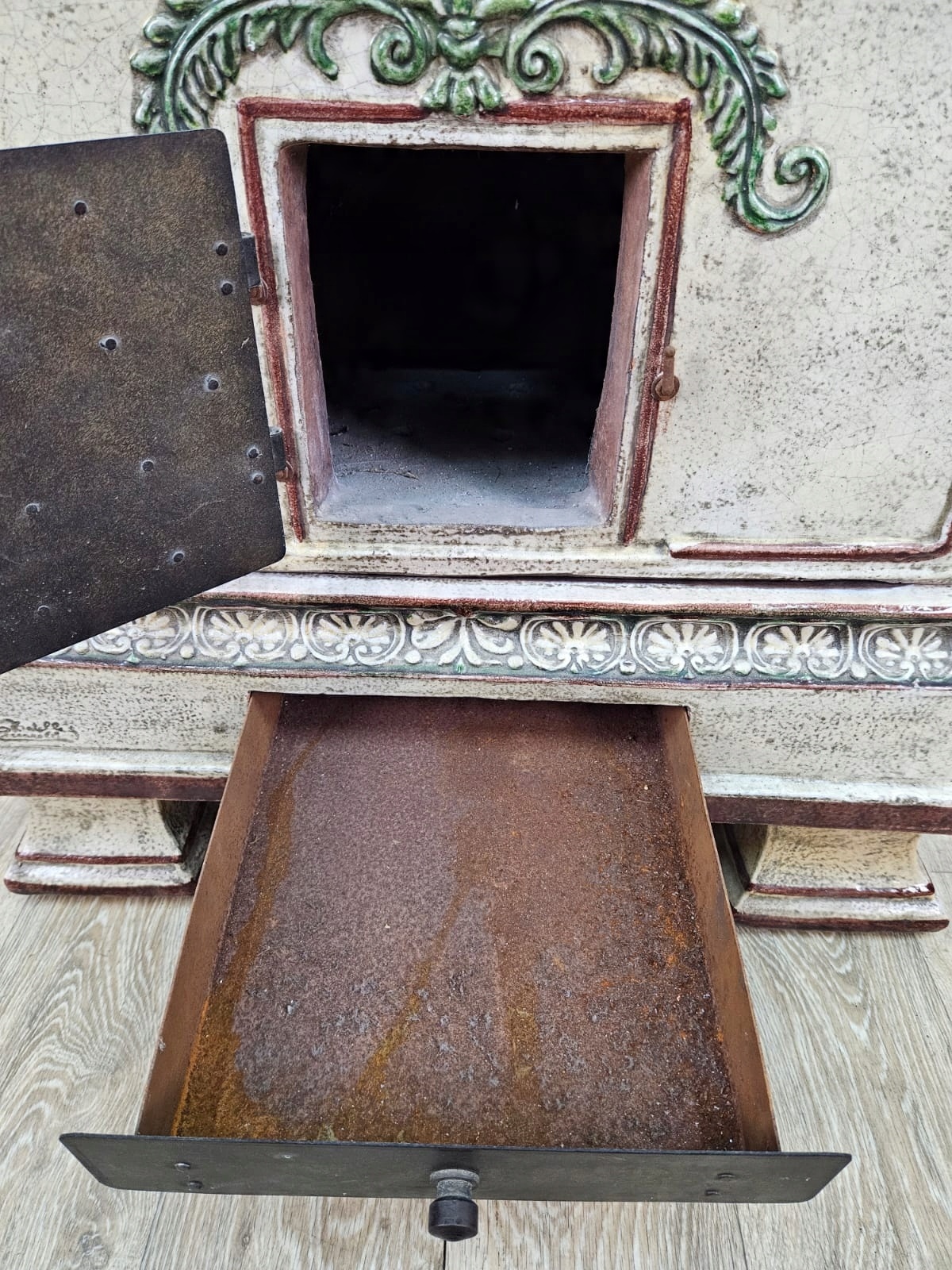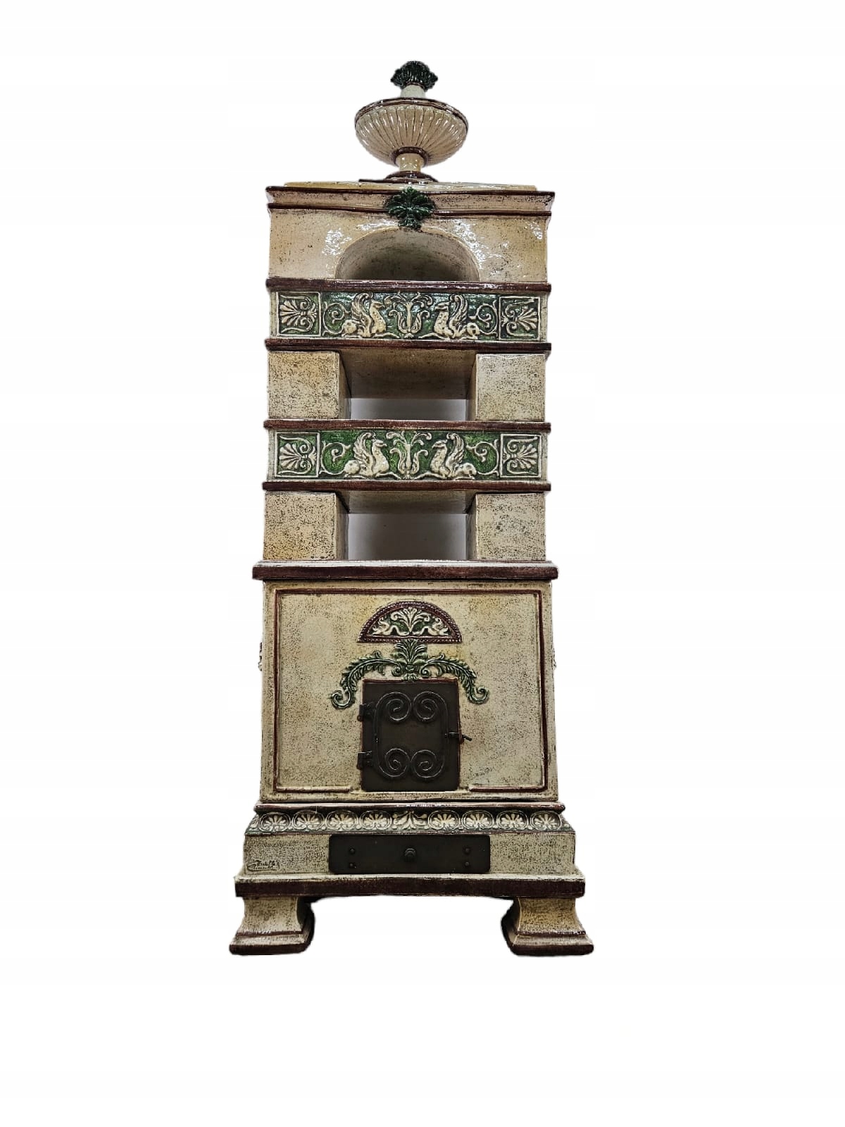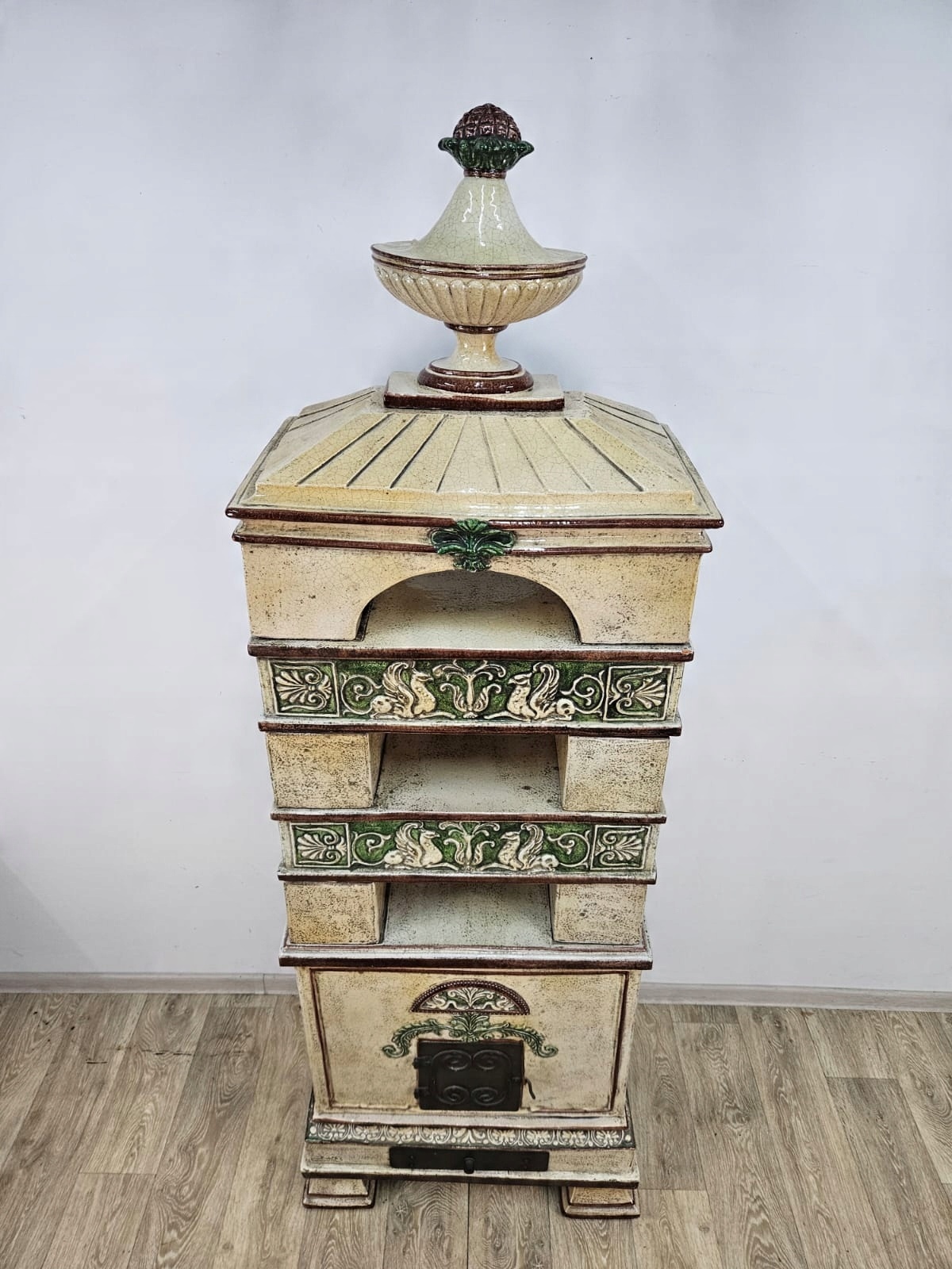 Меблі в Кєлчині, піч з керамічної кахлі Ceccarelli, 1940-1950-ті роки.