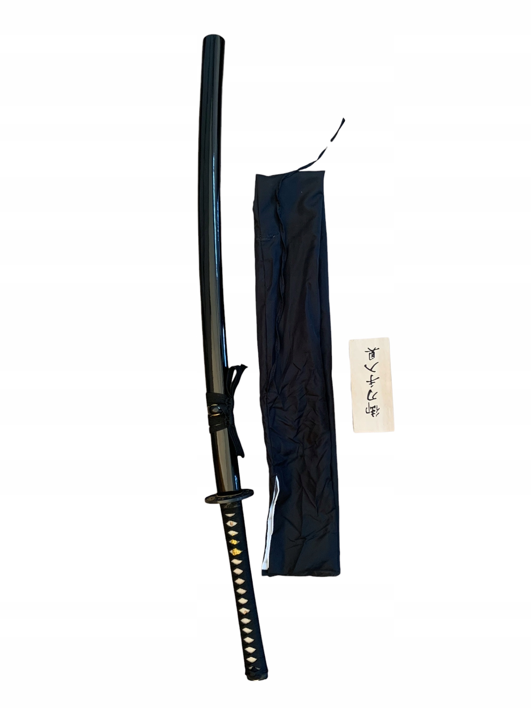 Меч в форме катаны, изготовленный по традиционным лекалам из таких материалов, как сталь, дерево и кожа. Клинок длиной 71 см изготовлен из 200 слоев кованого дамаска. Поскольку режущая кромка была снята и заточена, обращению с мечом рекомендуется уделить особое внимание.