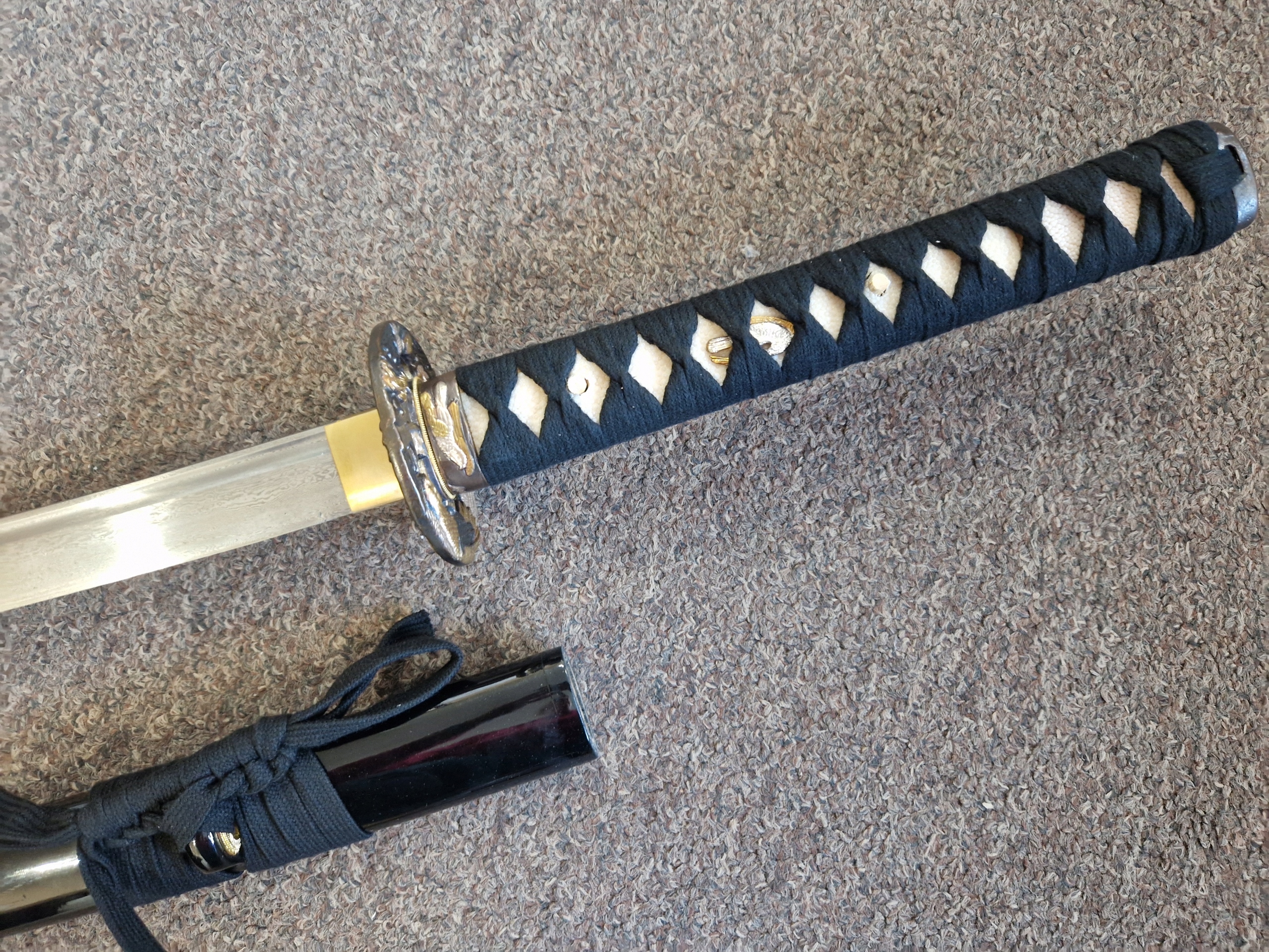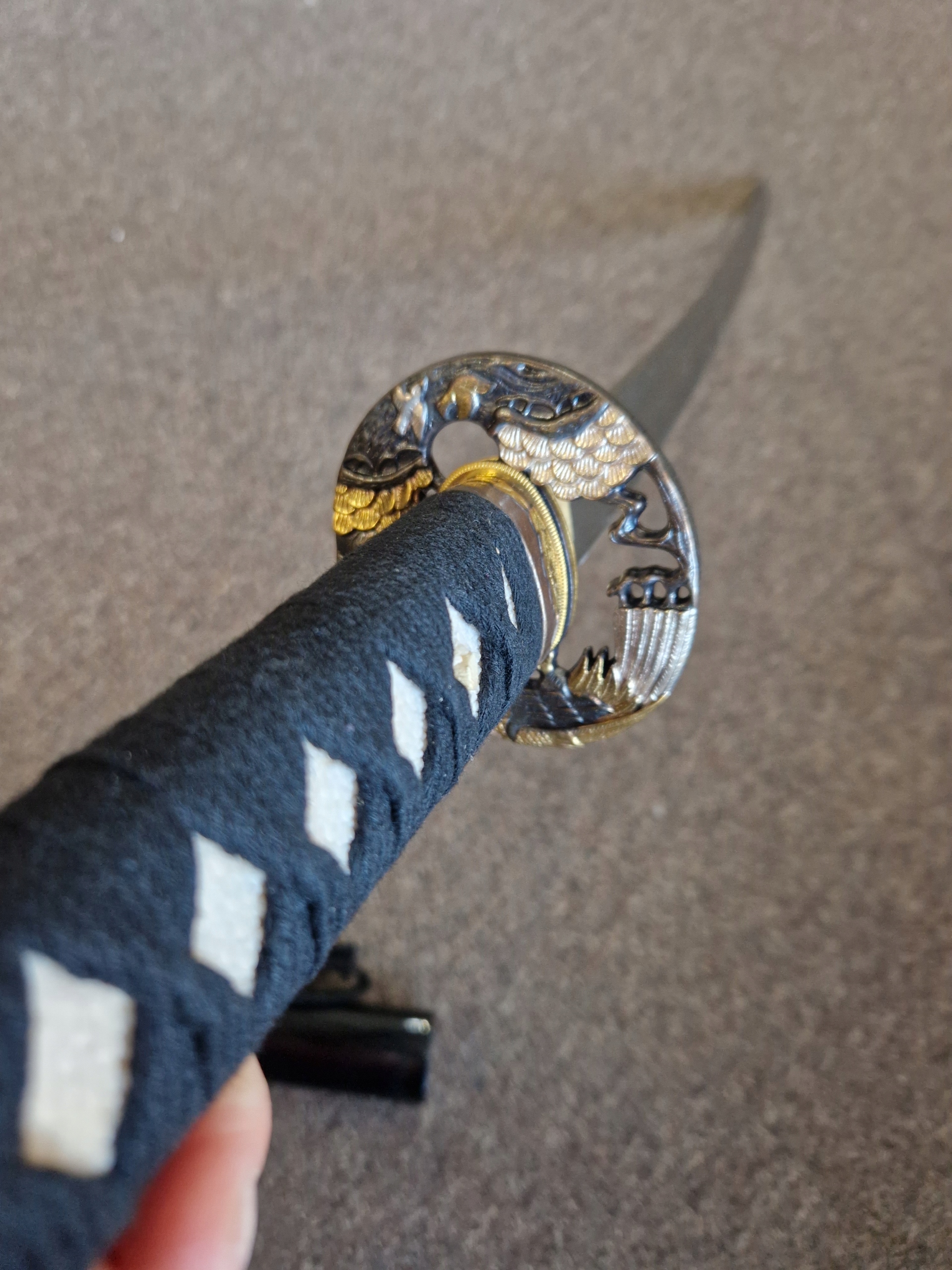 ПРОФ ЯПОНСКИЙ МЕЧ КАТАНА С ОРЛОМ ИЗ ДАМАСКОЙ СТАЛИ 1060 DS020 ПОВРЕЖДЕН