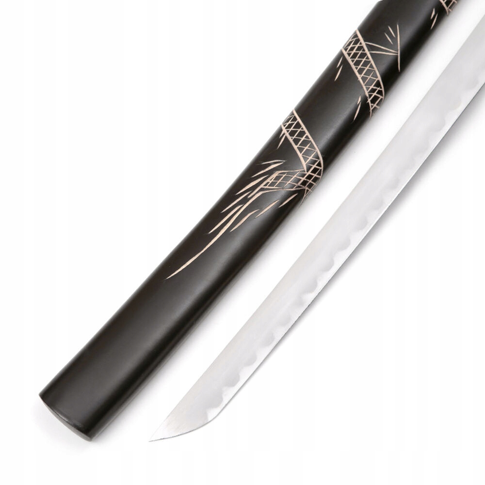 НОЖНИ/ САЙЯ: твердая древесина - лакированная хлопчатобумажная тесьма (сагео) - ручная гравировка дракона мотив