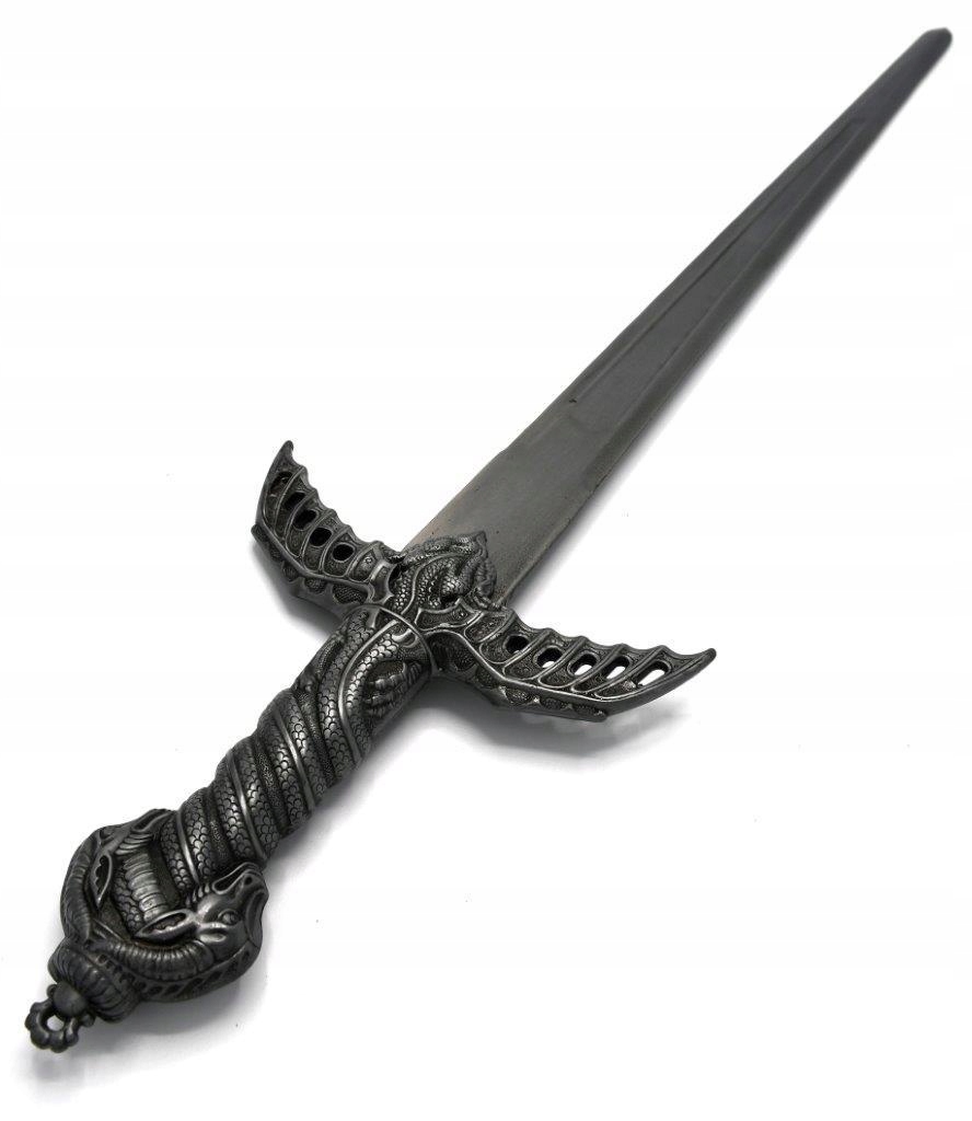 МЕЧ КОНАНА Уникальная копия меча Конана длиной 77 см, изготовленная Кольсером, украшенная золотым драконом (амфисбаэна), который окружает рукоять меча до навершия, где находятся две его головки. отражаются. Крылья дракона создают уникальное покрытие, добавляющее нотку волшебства и непревзойденной красоты. Обратите внимание на чистоту оформления. Меч неостр и его нельзя заточить.