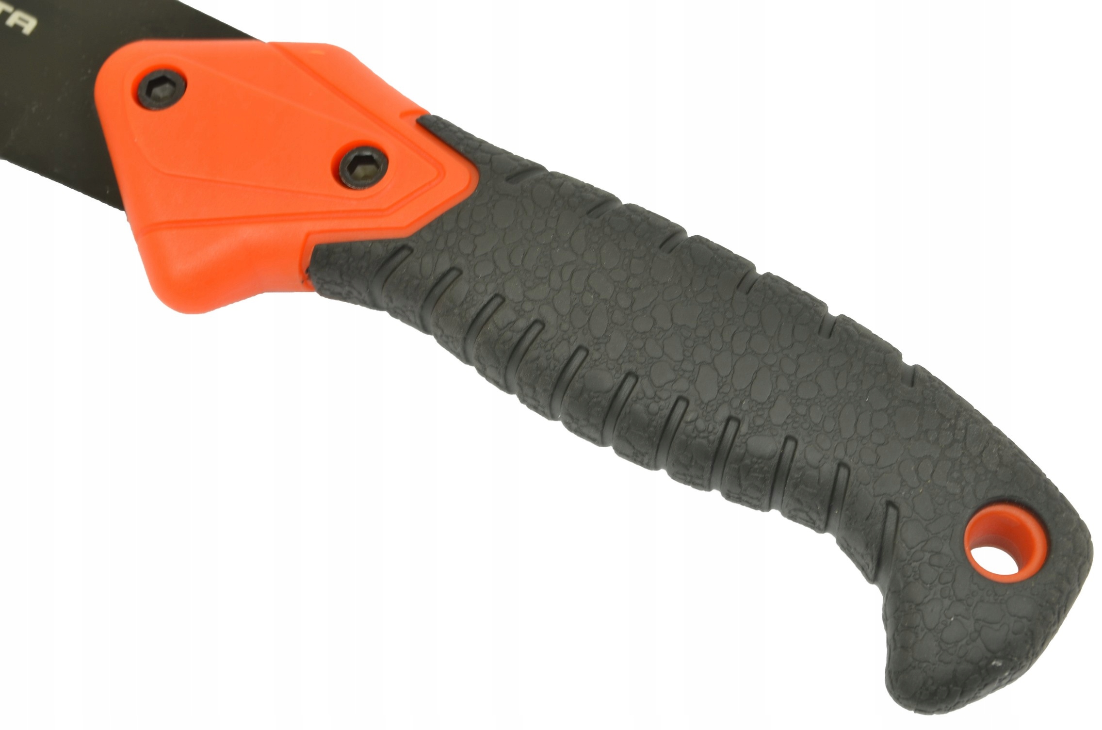- Поэтому мачете в продаже оснащено эргономичной рукояткой соответствующей формы, которая идеально ложится в каждую руку. Благодаря этому вы сможете эффективно пользоваться мачете, не опасаясь случайной травмы. На его конце также имеется небольшое отверстие, через которое при необходимости можно продеть веревку.