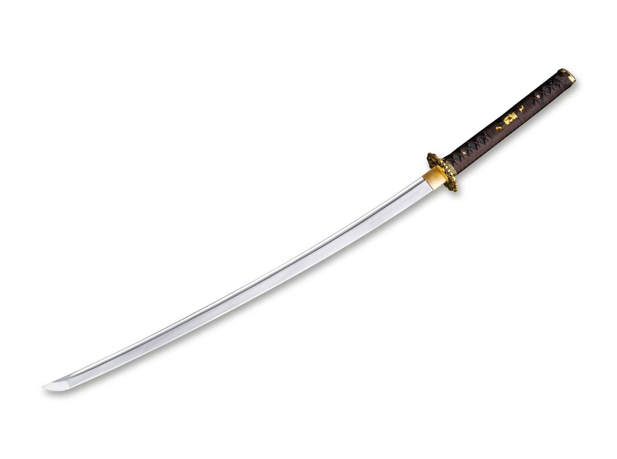 Клинок без нержавеющей стали имеет традиционный Bo-hi (Rolec), а деревянная ручка состоит в том, чтобы осторожно украсить цуба (колючий лезвие), менуки (декоративные элементы под ручкой) и темно-коричневого цука-я (ручка бар). Черный лакированный деревянный дровяной сая (меча влагалища) оснащен типичной струной Sageo, чтобы прикрепить к ремню. Декоративный или коллекторный меч, не подходящий для использования!