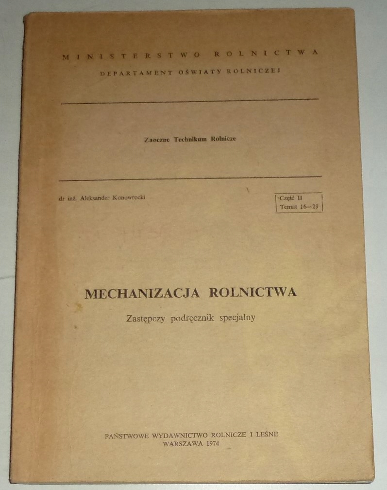 MECHANIZACJA ROLNICTWA Zastępczy podręcznik specjalny A. Konowrocki 1974