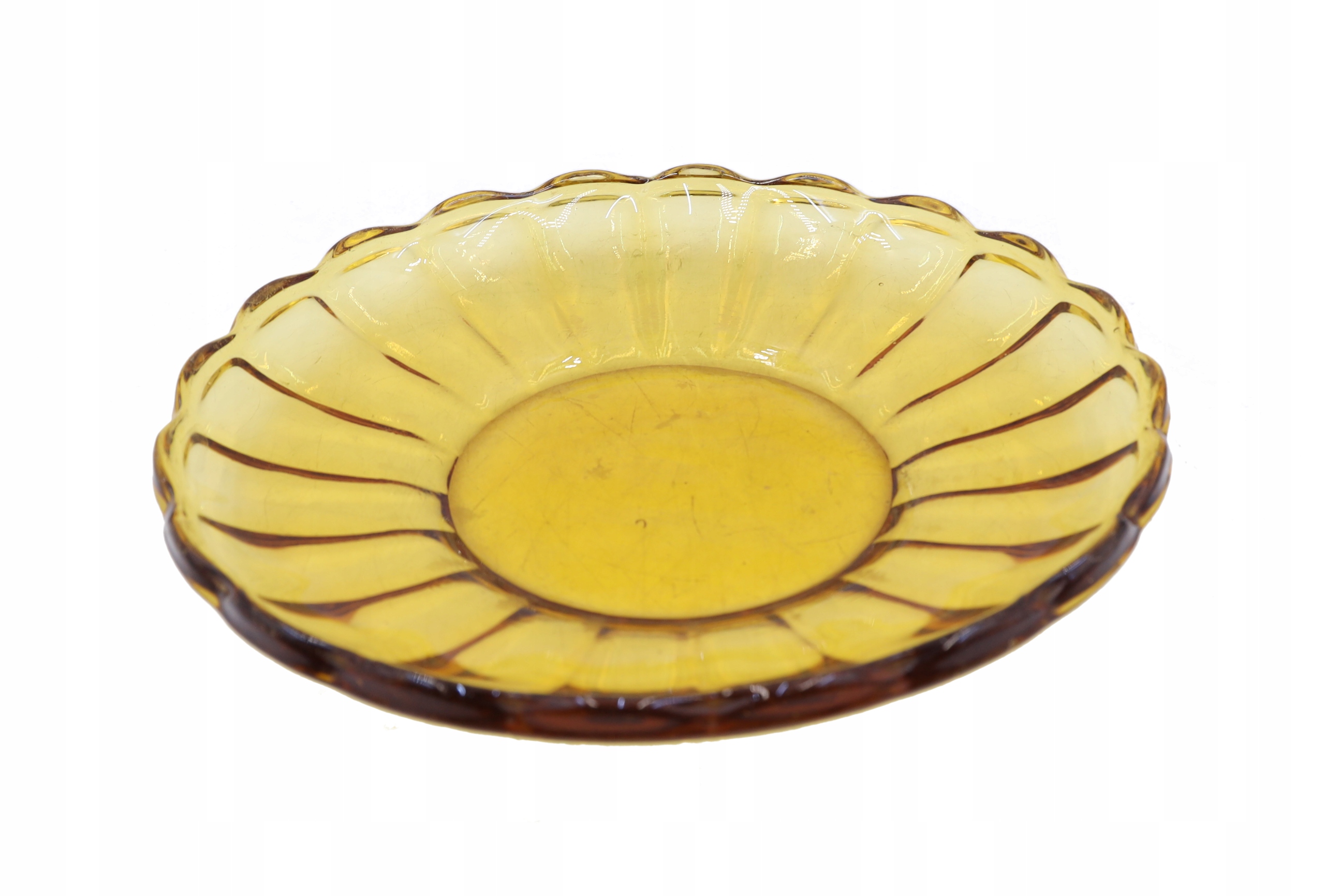 Стеклянная медовая тарелка Заверцкого стекольного завода периода Польской Народной Республики. В каталоге Хута модель № 186. Следы использования. Размеры: диам. 28 см. Рекомендую
