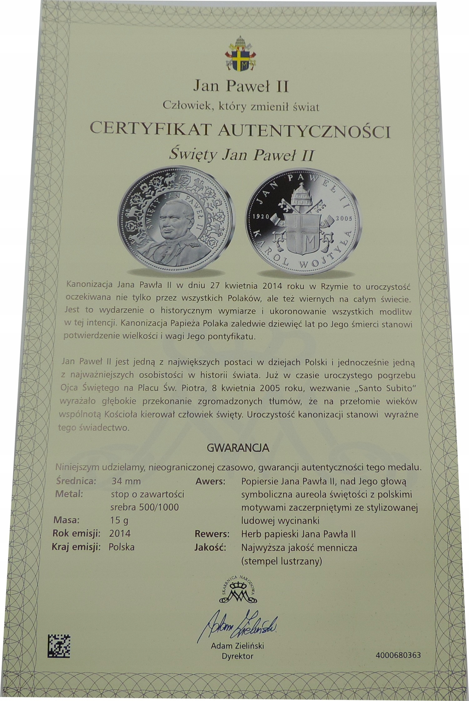 Медаль - монета - Нумизмат - Джон Павел II - AG500 - Silver -oy4904