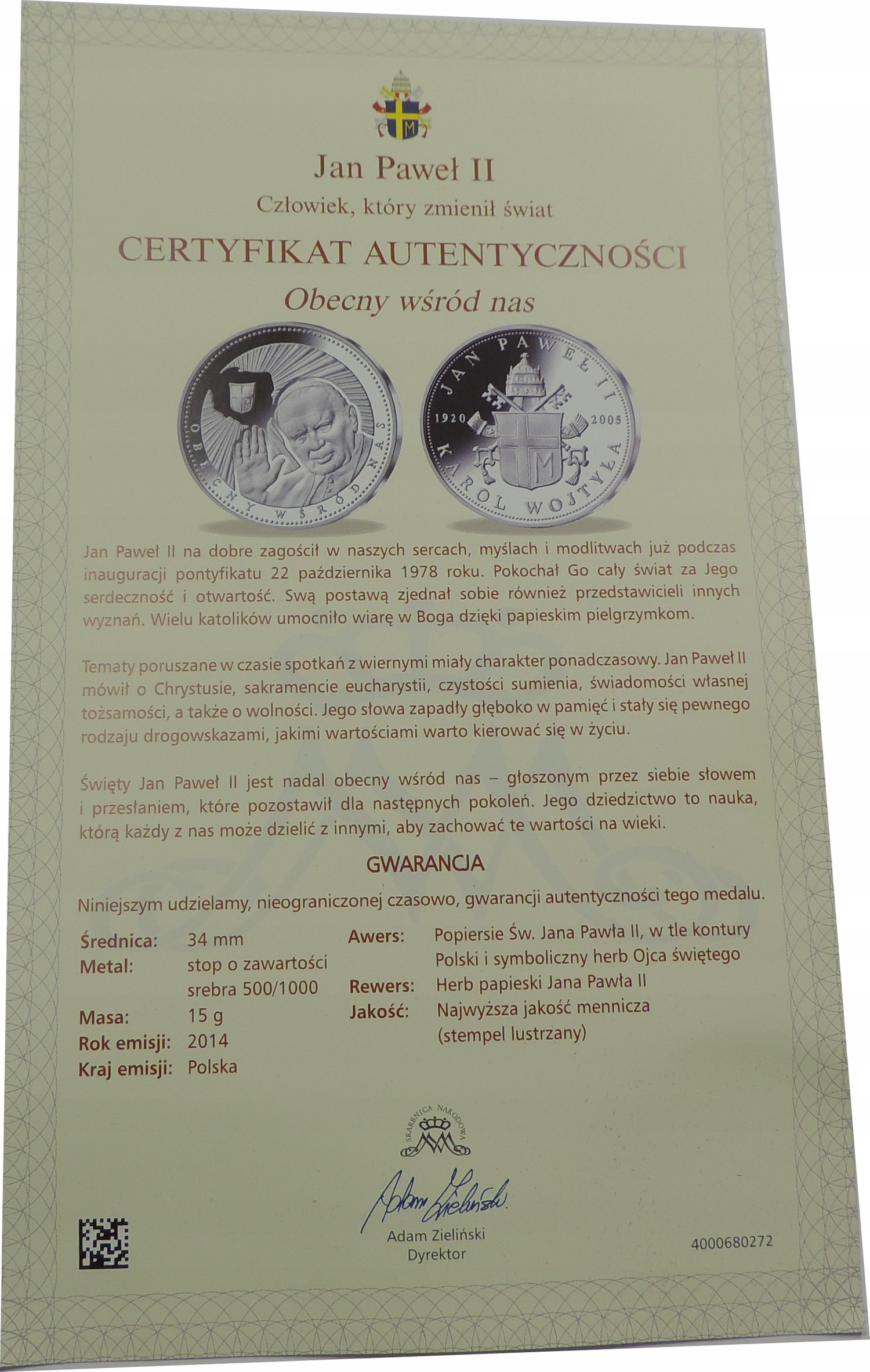 Медаль - монета - Нумизмат - Джон Павел II - AG500 - Silver -oy4906