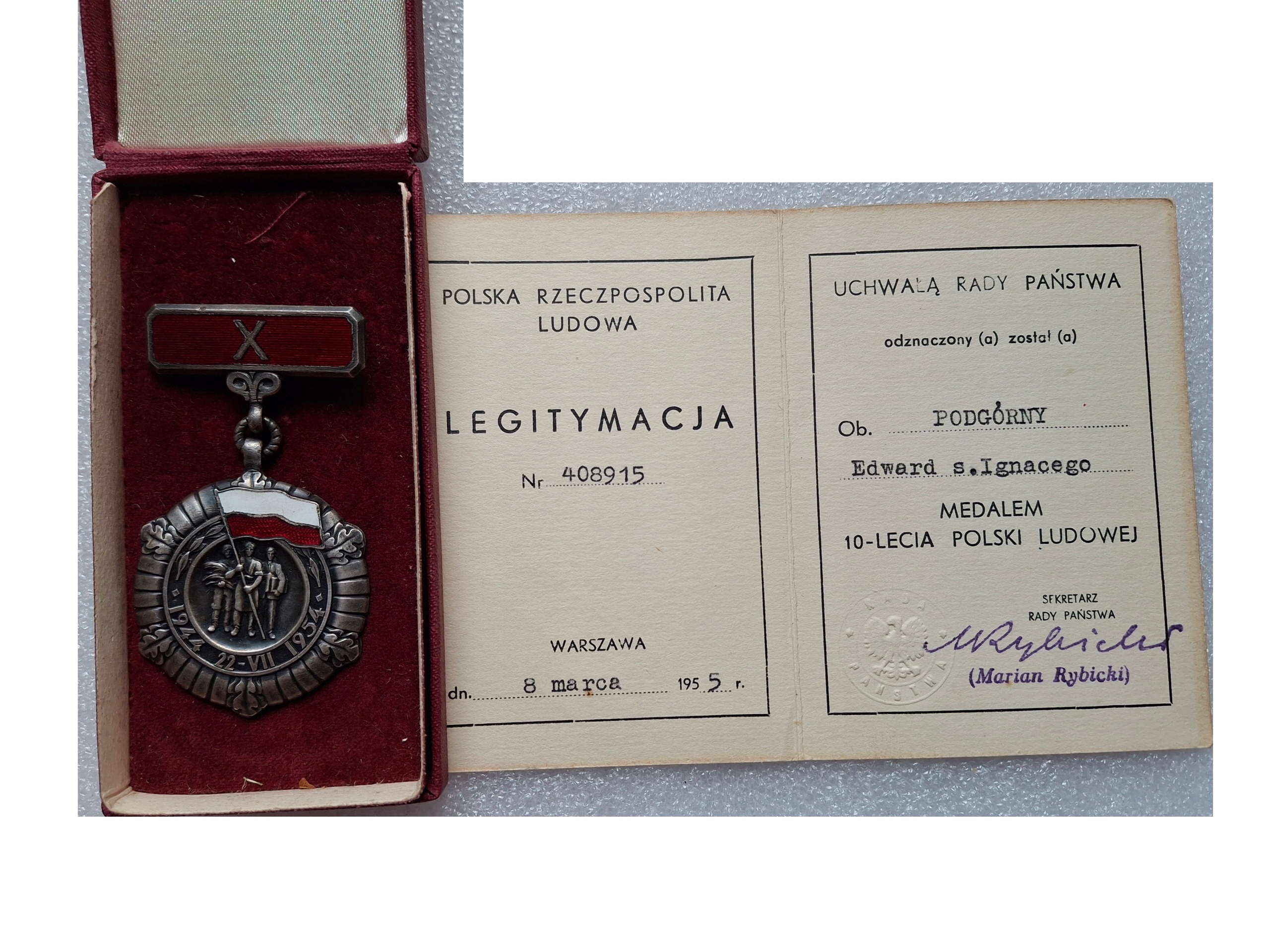 Медаль 10 -й годовщины народной Польши + Идентификационная карта