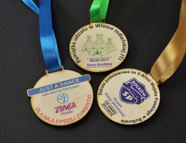 Медали точно вырезаны с помощью лазерной технологии, а графика на них выполнена с помощью инновационной УФ-печати технологии. Нашу продукцию отличает высокое качество, эстетичность и отличная цветопередача. При этом отпечаток долговечен и устойчив ко всем видам повреждений, таких как царапины, истирание графики или вредное воздействие атмосферных факторов (влажность, вода, солнце).