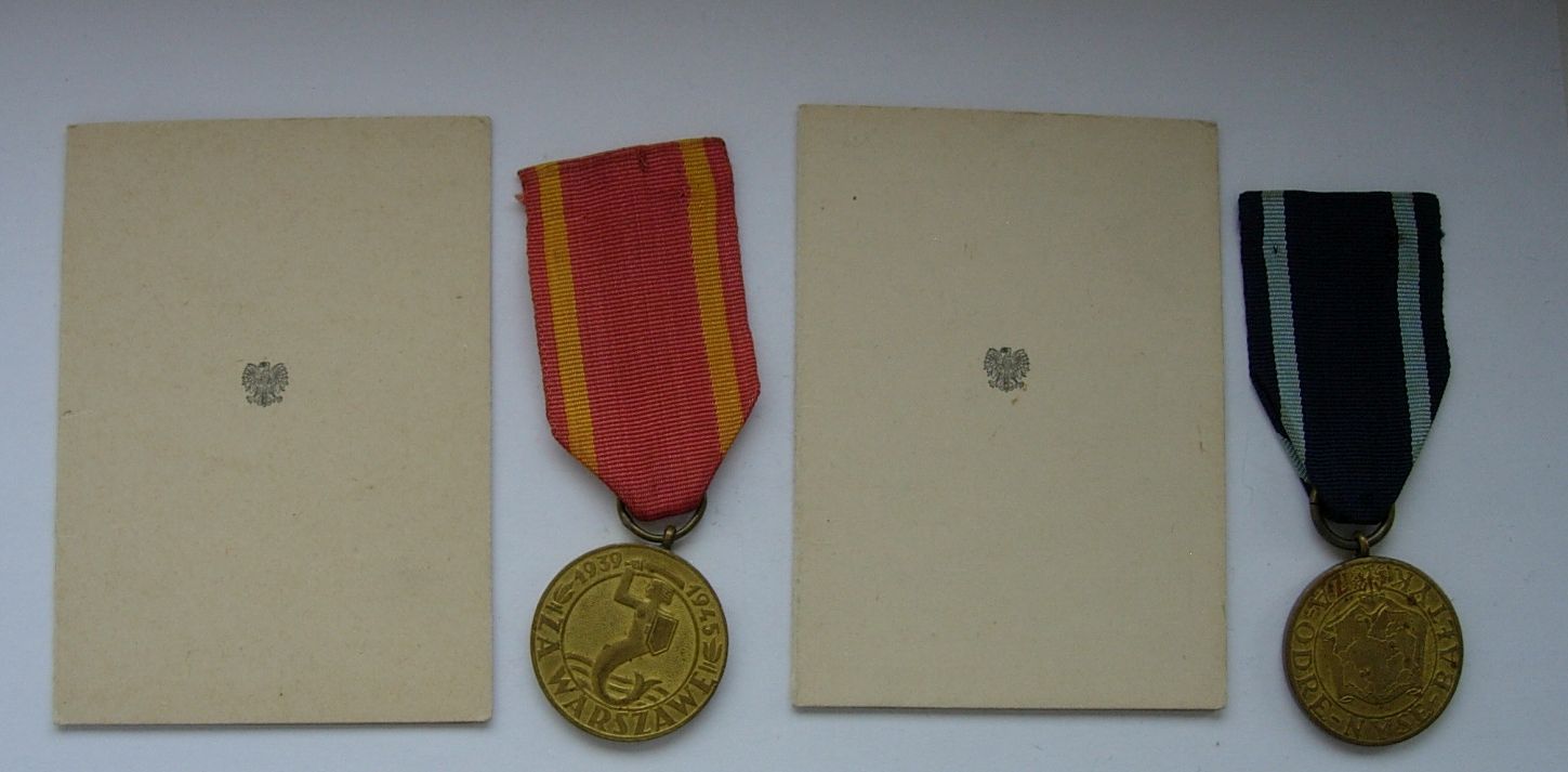 аукцион включает в себя медаль для Варшавы и Одра Ниса с удостоверением личности для одного и того же человека.