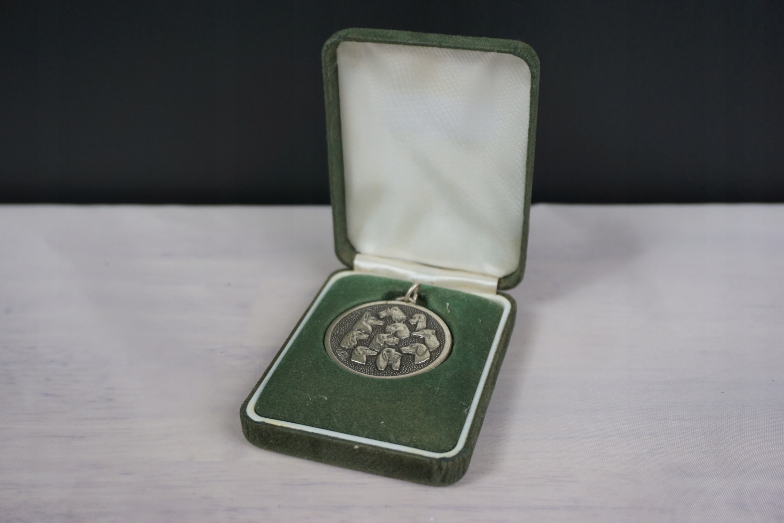 Номер/медаль собаки. Оригинальная коробка. Все в очень хорошем состоянии, начиная с ящика. Диаметр медали 39 мм. Коробка 8,5см х 6,5см х 2,5см.
