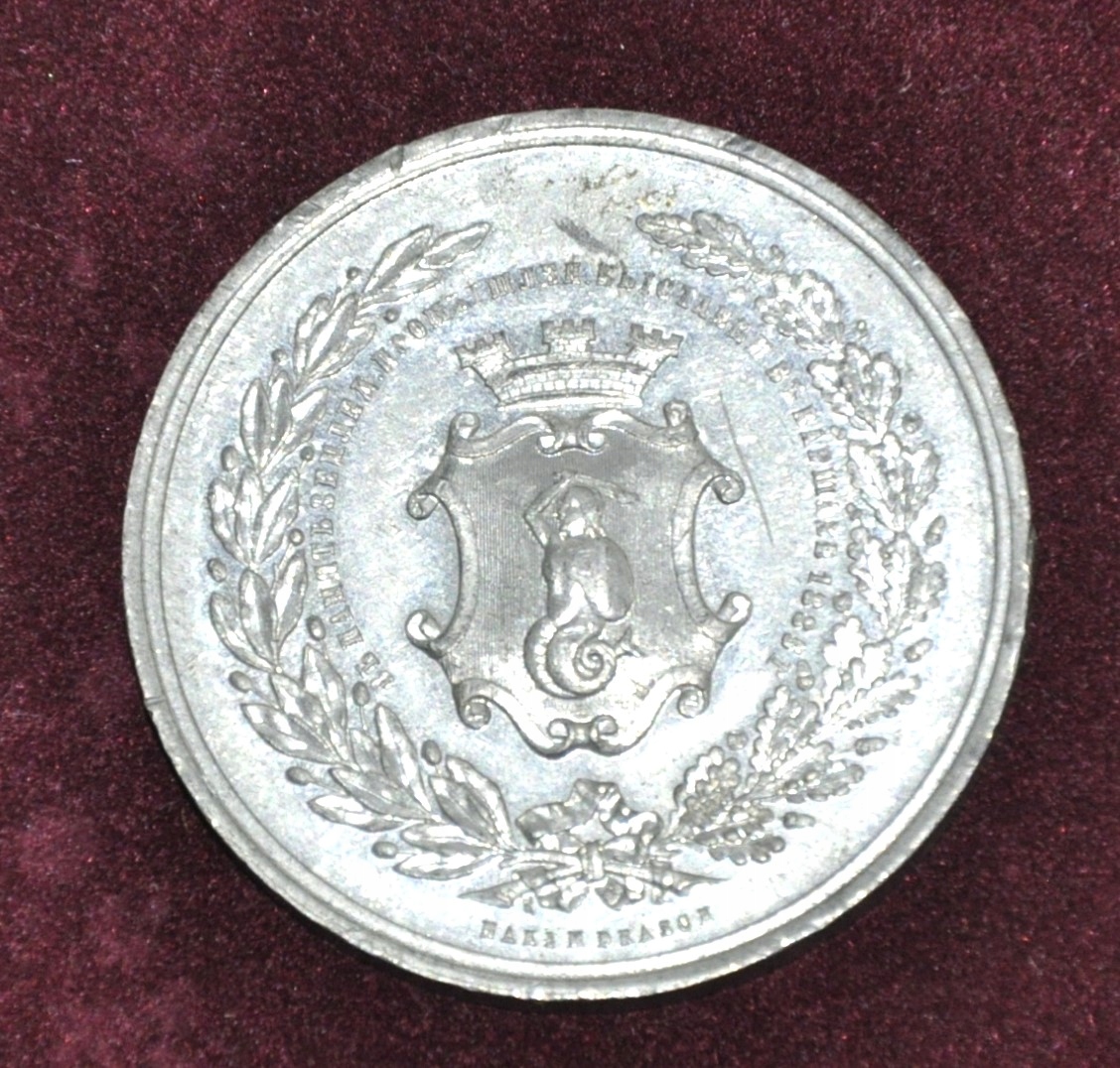 МЕДАЛЬ-СУВЕНИР С СЕЛЬСКОХОЗЯЙСТВЕННОЙ И ПРОМЫШЛЕННОЙ ВЫСТАВКИ ВАРШАВА 1885 ГОДА