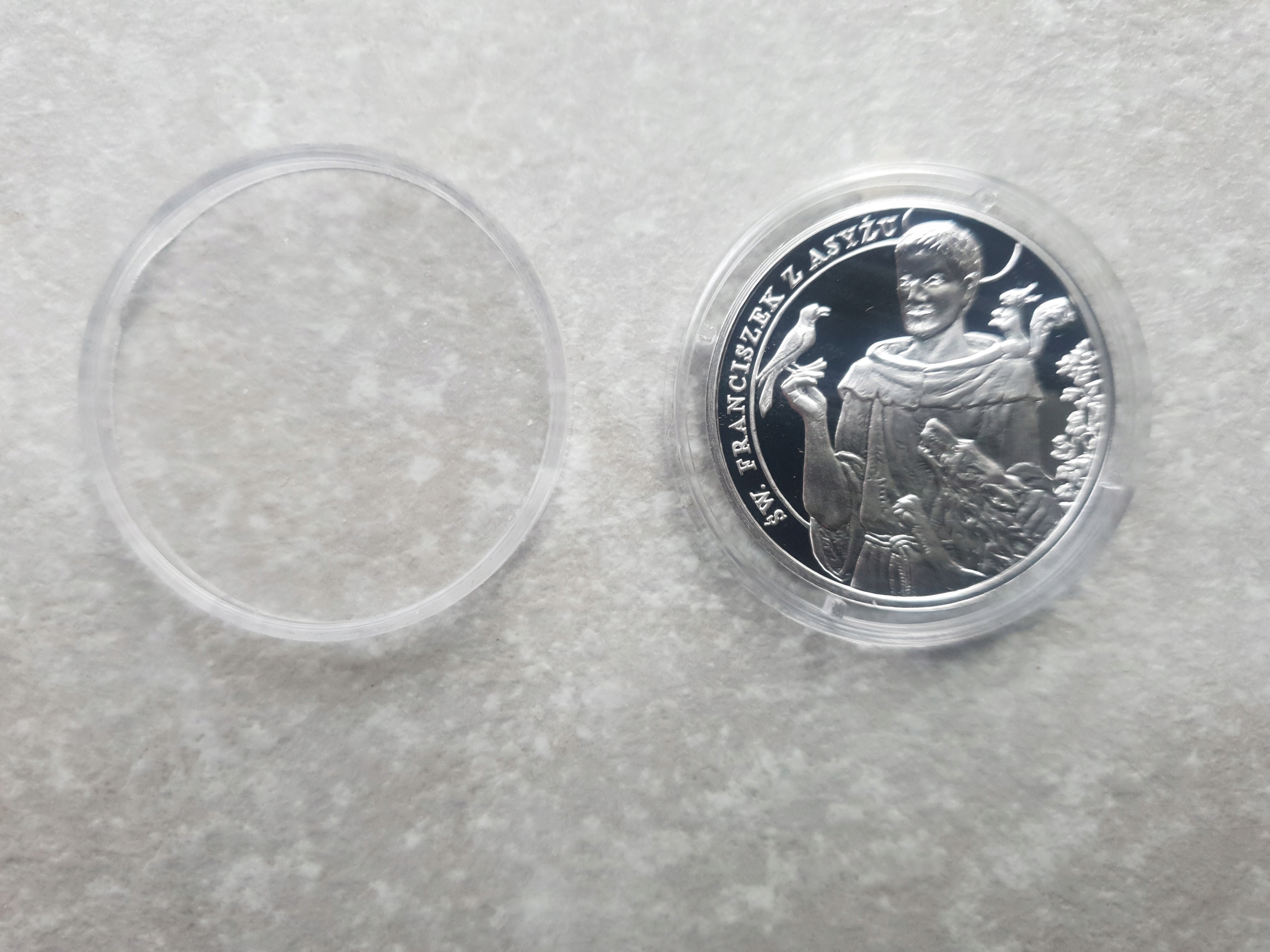 Медаль Святых Церкви - Святой Франциск Ассизи Серебряный Аг 999. Настоящая фотография