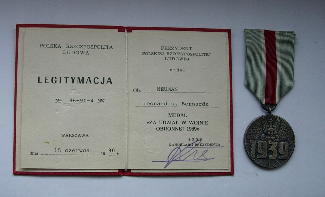 МЕДАЛЬ ЗА ВОЙНУ 1939 ГОДА + удостоверение личности ПРЕЗИДЕНТА ПРЛ