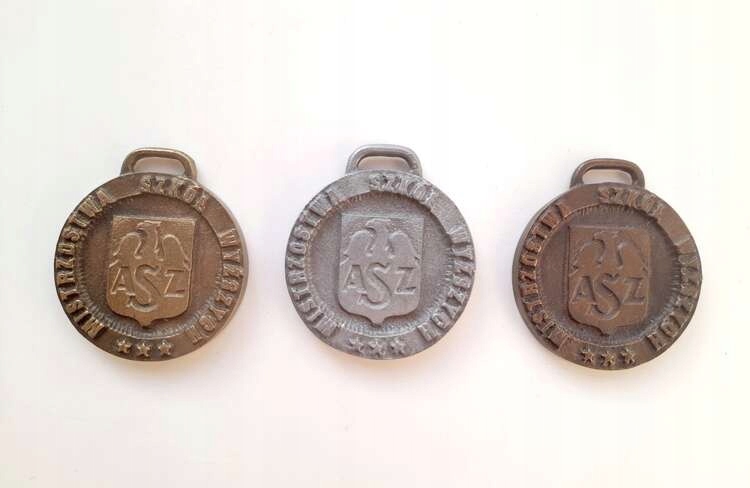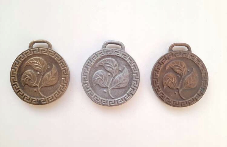 Описание: Набор медалей из металла (золото, серебро и бронза), выпущенных во время PRL (70 -х или 80 -х) для игроков, участвующих в чемпионатах AZS университетов. На аверсе есть название соревнования и знак AZS, а также на обратном заливном листе в ободе с декоративным мотивом из древней Греции. Размеры (см): 4,5 (высота) 4,5 (ширина) 0,5 (толщина) цена за набор. Продажи только в наборе