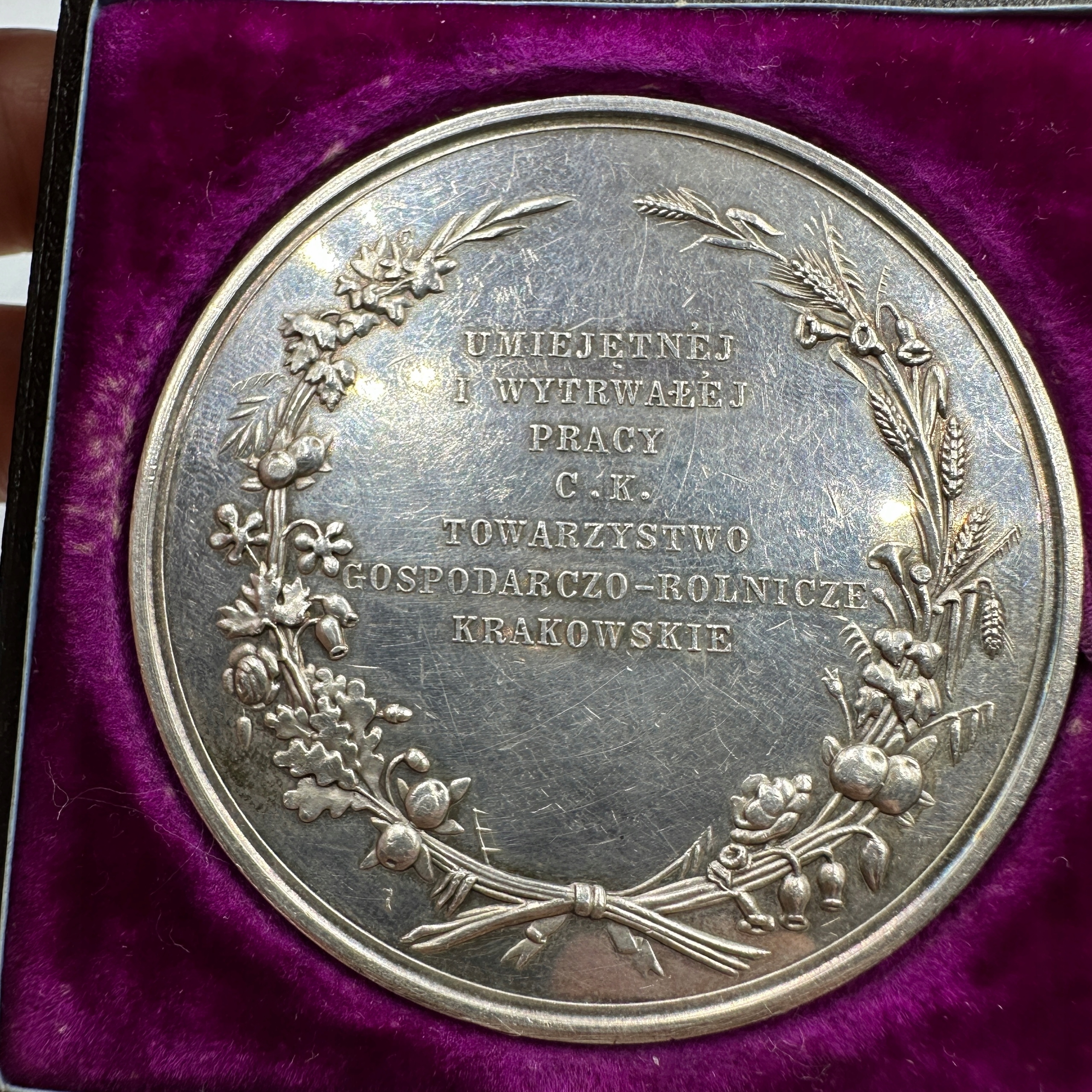 Медаль премии 19-го века экономического и сельскохозяйственного общества в Кракове.