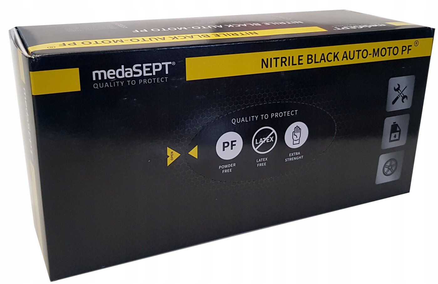 MEDASEPT NITRILE BLACK AUTO- MOTO PF — перчатки значительно толще стандартных, а также имеют более длинные манжеты. Они также имеют текстуру по всей поверхности. Все эти свойства обеспечивают самое главное: надежный захват и удобство использования.