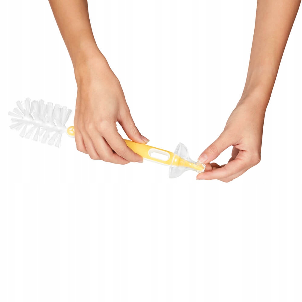 Гибкая головка со щетинками, расположенными под углом 180° достигает каждого места, удаляя все остатки пищи. Он также оснащен практичной насадкой для чистки соски, которая удаляет налет со всех уголков и щелей.