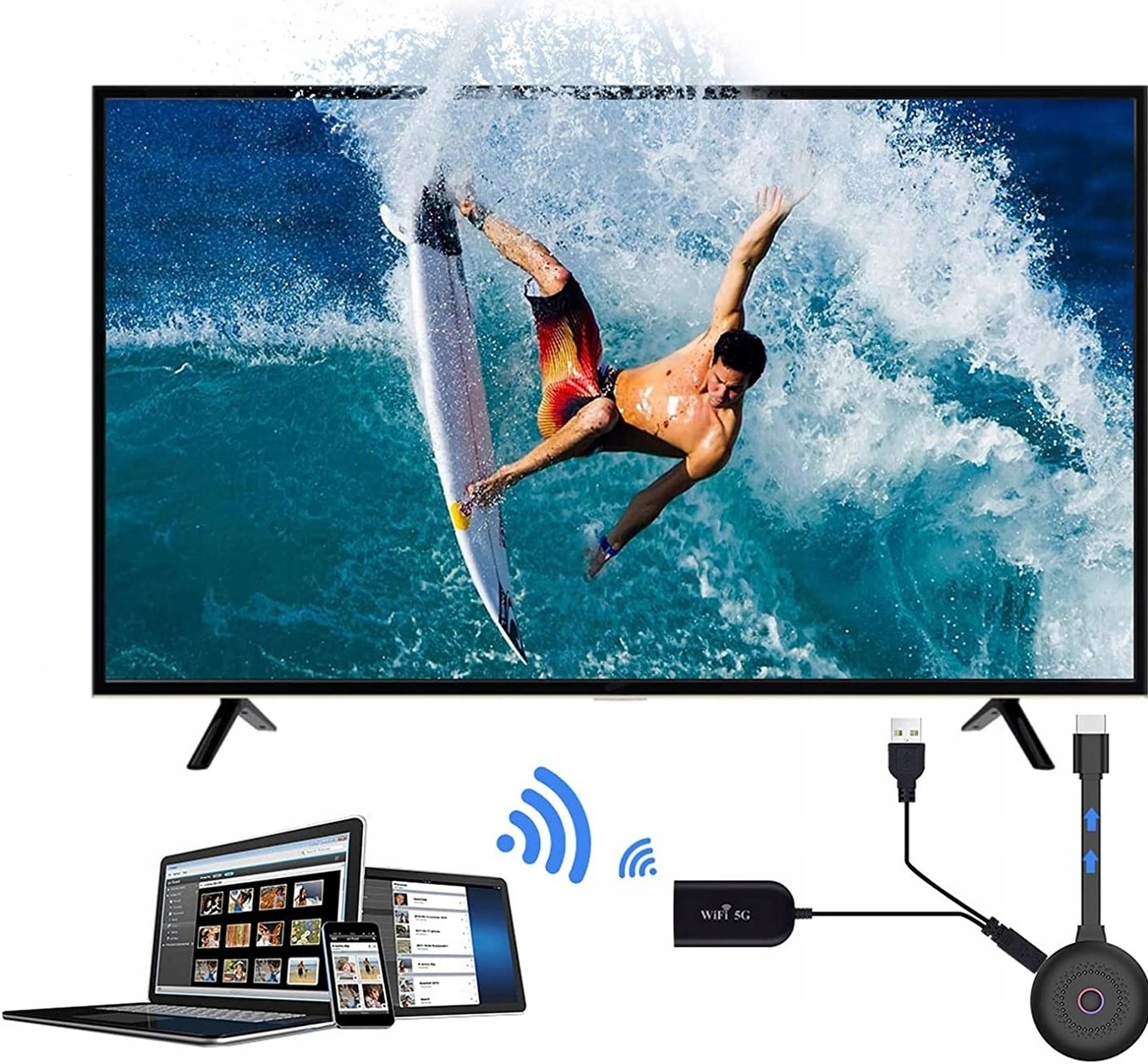 wi-fi-адаптер h1> - Беспроводной и портативный: b> беспроводной HD-адаптер отправьте интерфейс с устройства на отображающее устройство через сигнал 4G или Wi-Fi и выполните видео, изображение и воспроизведение звука.