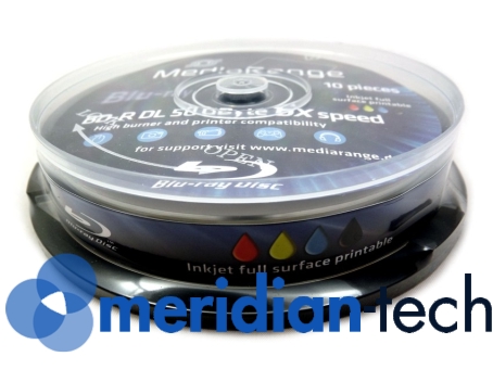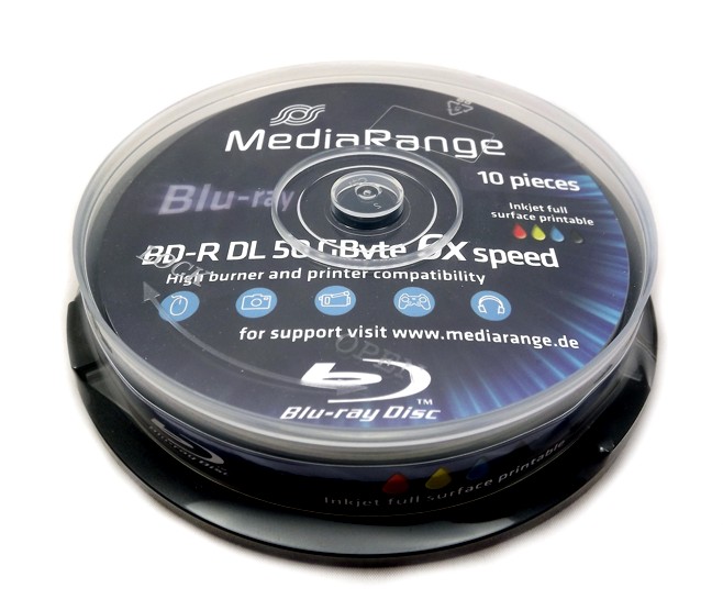 10 носителей MediaRange BD-R DL емкостью 50 ГБ и скоростью записи до 6х, в упаковке торт. Поверхность диска для струйной печати - адаптирована для печати на струйных принтерах.