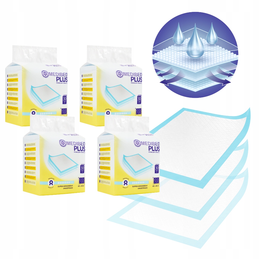 4 упаковки одноразовых прокладок MEDIBED_PLUS, размеры: 40х60 см (в упаковке 30 шт.)