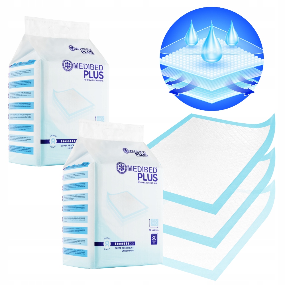 2 упаковки одноразовых прокладок MEDIBED_PLUS, размеры: 90х60 см (в упаковке 30 шт.)
