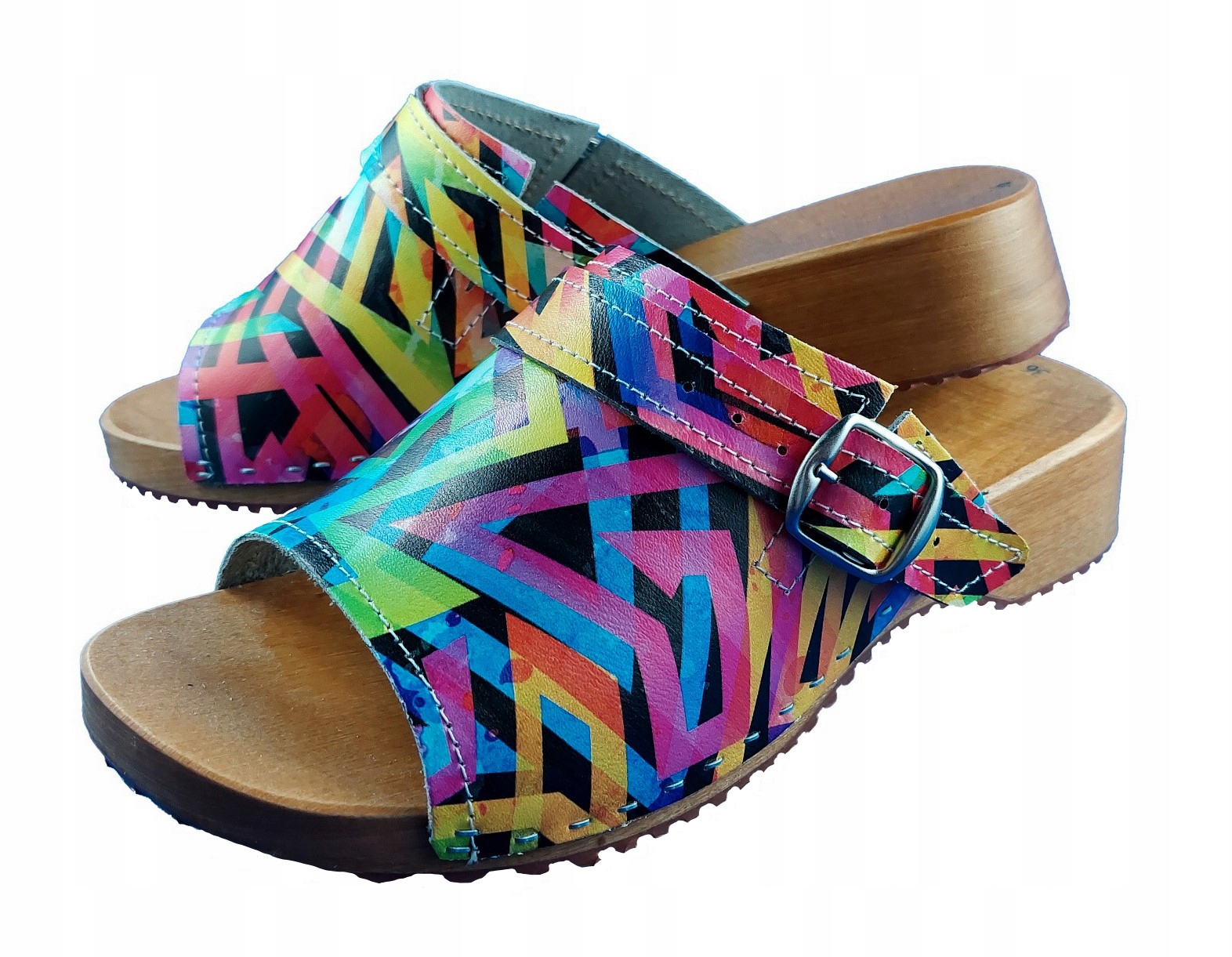 - Подошва изготовлена из натуральной древесины ольхи, обладающей оздоровительными свойствами и анатомическая форма позволяет не ощущать усталости ног в течение многих часов. Дерево не вызывает потоотделения ног, поскольку отлично впитывает пот и не вызывает сыпи.