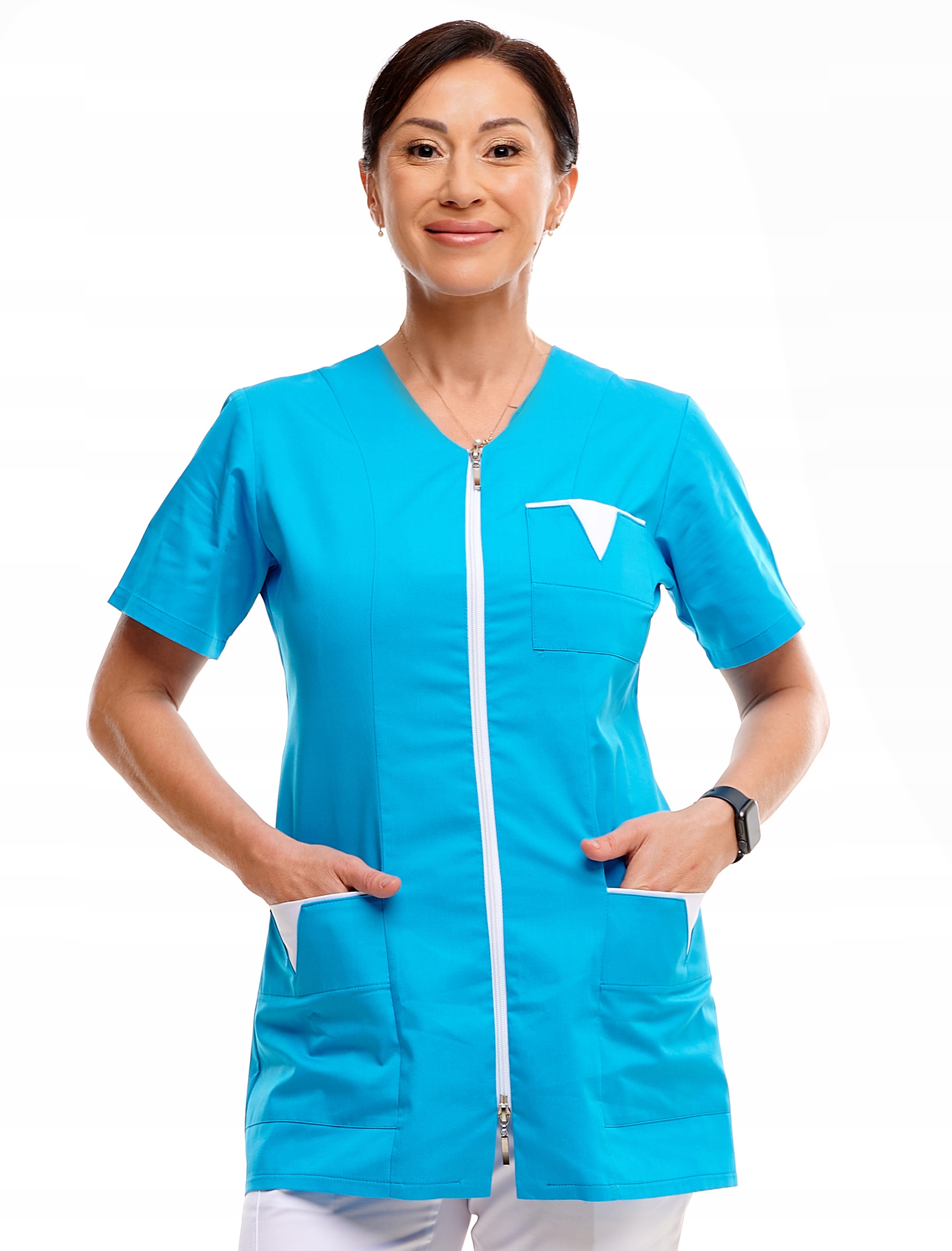 Fartuch Medyczny Roz. 42 Niebieska Garsonka Rozpinana Zamek Strój Ochronny