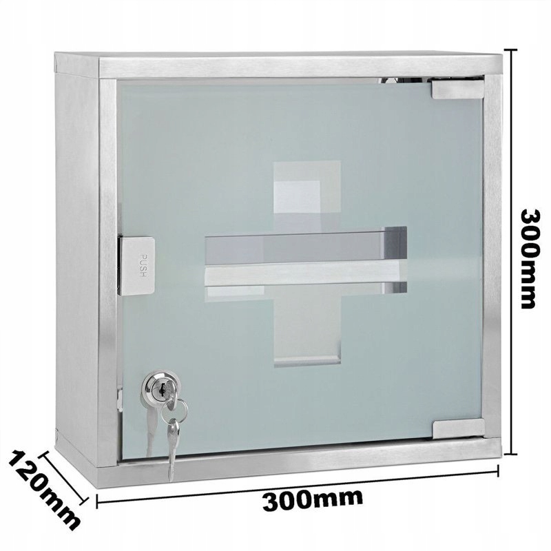 Сатиновые двери из безопасного стекла можно легко открыть и закрыть благодаря чувствительному к магнитному закрытию давления. Для безопасного хранения лекарственных средств у комплекта первой помощи имеет барабанную трансляцию и два ключа. Шкаф может быть быстро и легко установить на стене с помощью прилагаемых винтов и дюбелей.