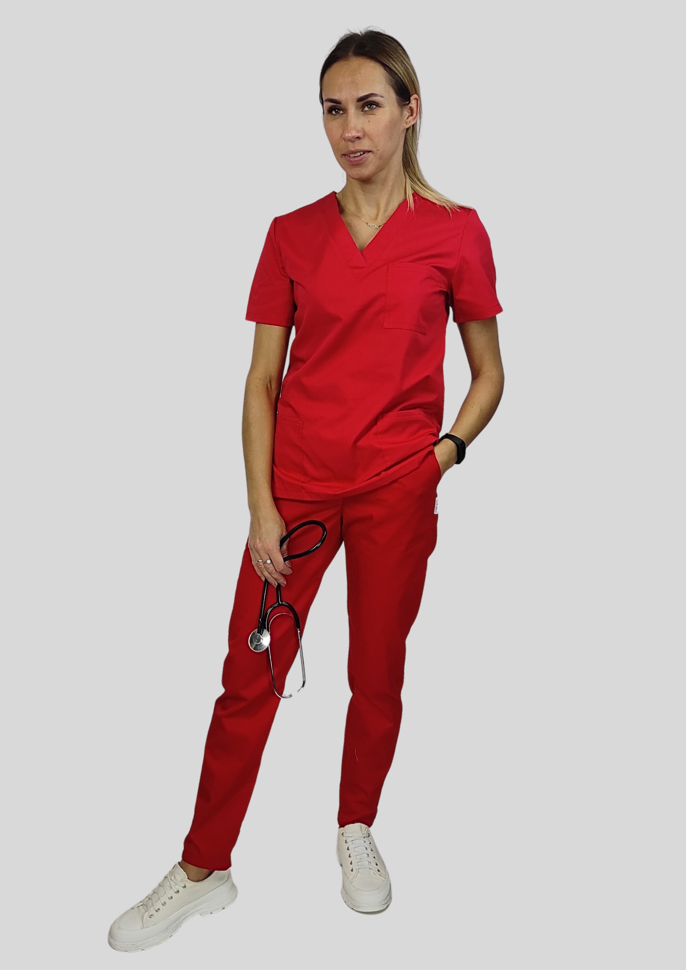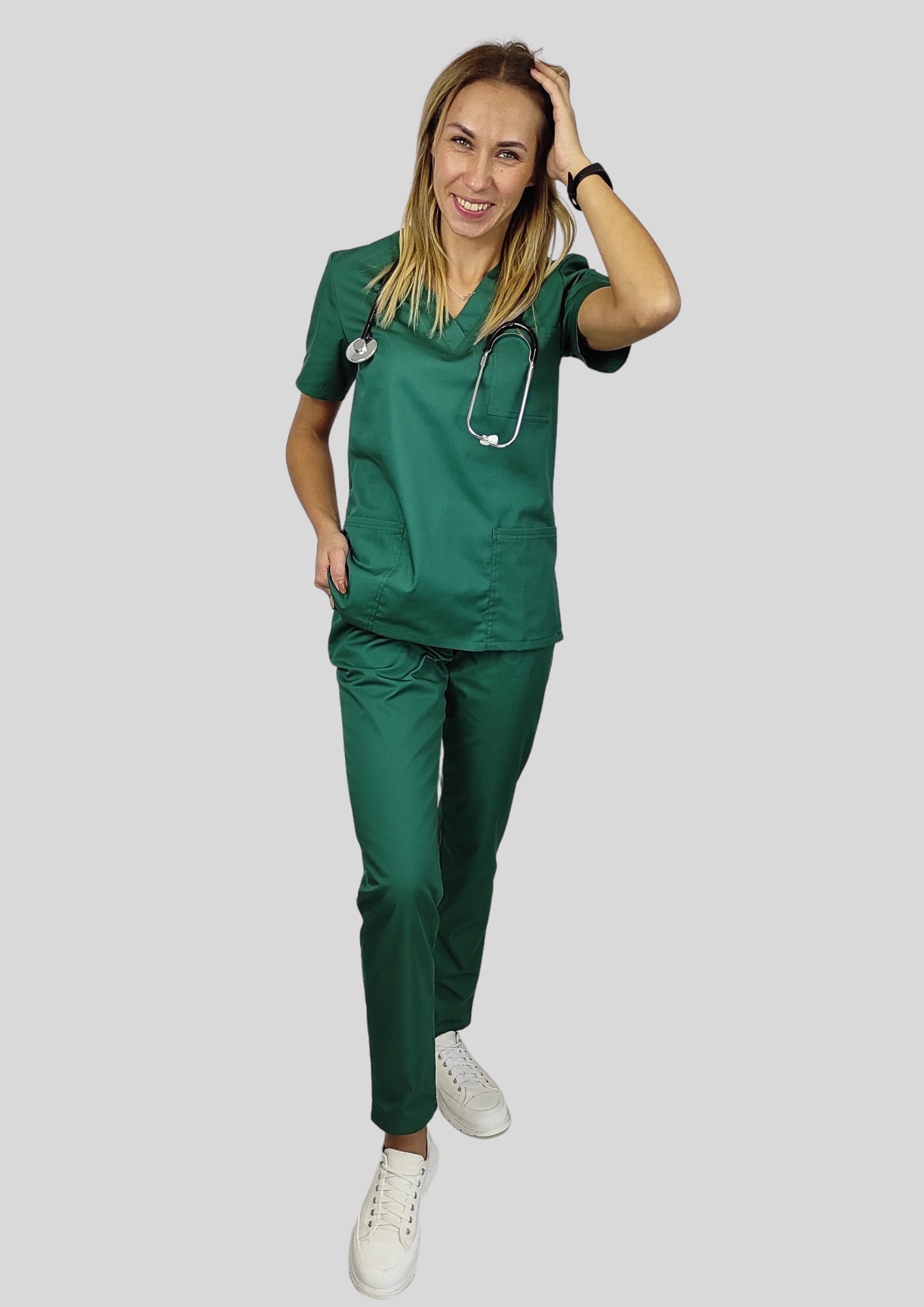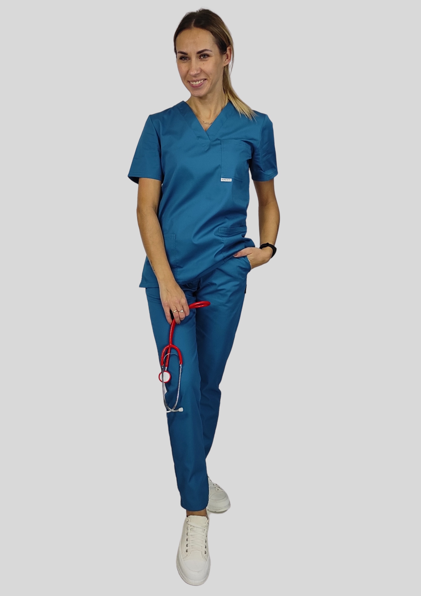 Медицинский набор женских стройных стандартов представляет собой комбинацию классической медицинской толстовки и трубчатых штанов. Современный срез этого набора понравится людям, которые любят спортивный вид. Стиль и функциональность являются основными особенностями медицинской формы в этой серии.