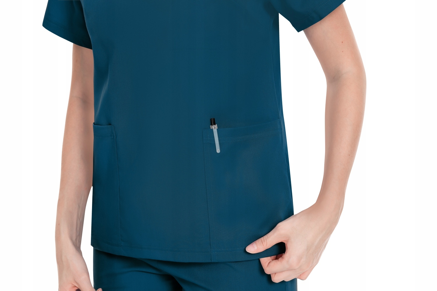 Медицинская толстовка имеет очень тщательно обработанный V-образный вырез и три практичных карманы.