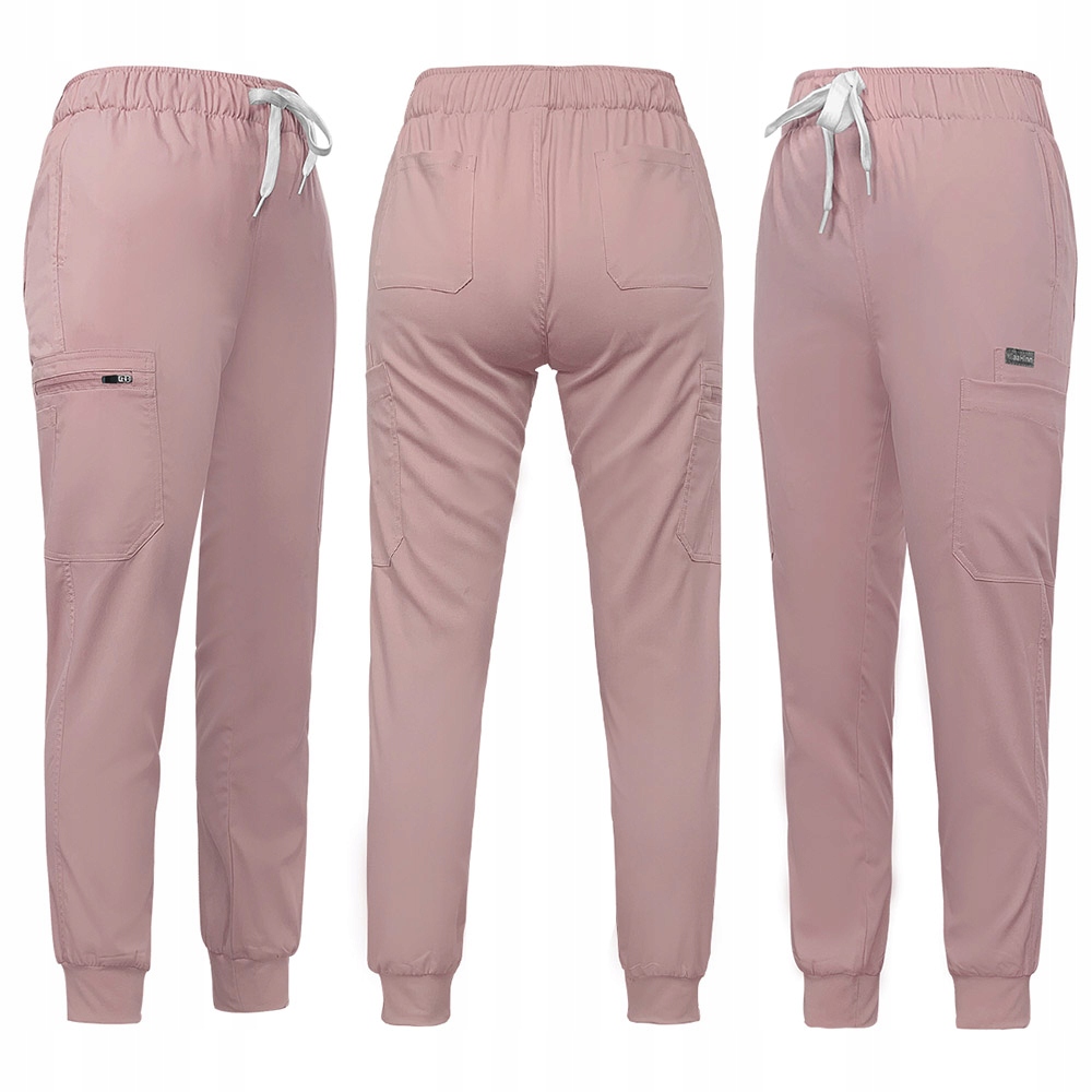 Медицинские брюки имеют среднюю посадку и регулируются кулиской на талии.