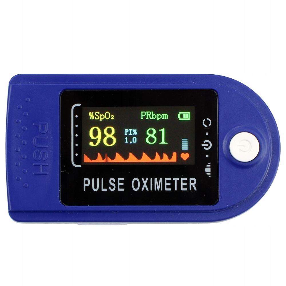 Пульсоксиметр — это современный, неинвазивный и, прежде всего, безболезненный способ измерения сатурации, частоты сердечных сокращений по скину. После надевания пульсоксиметра на палец инфракрасный светпроникает в кожу, благодаря чему прибор может автоматически измерять параметры и отображать полученные результаты на цветном дисплее< /б>. Все, что вам нужно сделать, это поместить устройство на палец и нажать кнопку ВКЛ/ВЫКЛ. После завершения исследования и удаленияпальца устройство автоматически выключится.