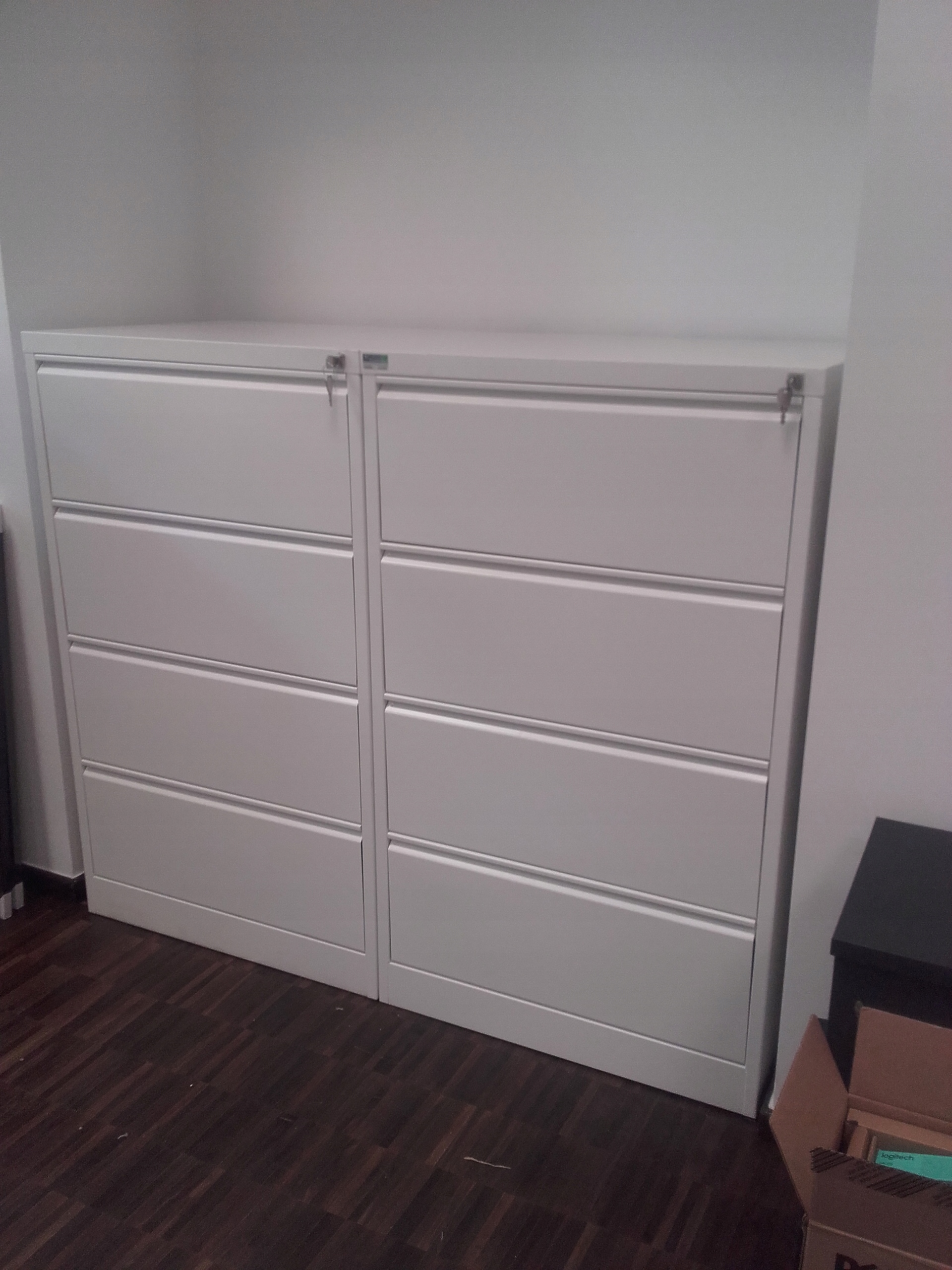Назначение: шкафы для хранения карточек истории болезни. Шкаф SZK 318 с 4 ящиками для конвертов B5 горизонтально. Корпус шкафа и фасады ящиков изготовлены из толстого стального листа. 1,0 мм, нижний край из оцинкованного листового металла, остальные части ящиков из толстого листового металла. 0,8 мм. Ящик рассчитан на два ряда файлов, на шариковых направляющих двойного выдвижения и с защитой от выпадения. Каждый ящик имеет 2 передвижные перегородки типа «Г». Центральный замок ящиков. Максимальный размер сохраняемого документа: 215 х 258 мм. Максимальная нагрузка на ящик 50 кг. ЦВЕТ КРАСКИ СВЕТЛО-СЕРЫЙ RAL 7035