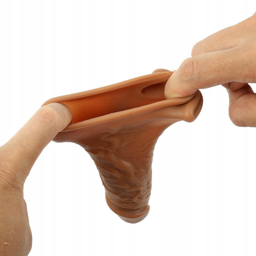 Очень реалистичный удлинитель пениса, изготовленный из медицинского силикона с вниманием к мельчайшим деталям, имитирующий внешний вид настоящего пениса. Удлинитель немного утолщает половой член и удлиняет его примерно на 2,5 см. Колпачок оснащен ручкой, расположенной за яичками, благодаря чему он не соскальзывает и плотно прилегает к пенису. Простота в использовании и чистке. Удлинитель очень гибкий, он растягивается вдвое, поэтому легко помещается внутри любого пениса. Благодаря высокой растяжимости надевать накладку очень быстро и комфортно.