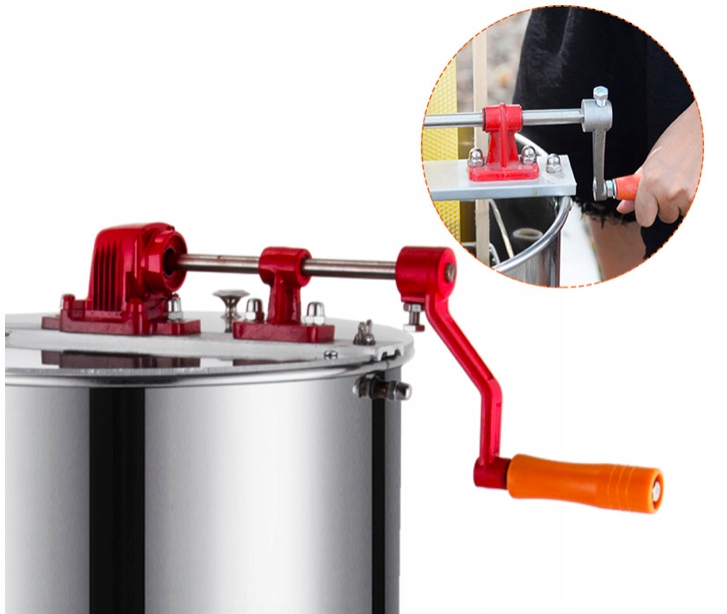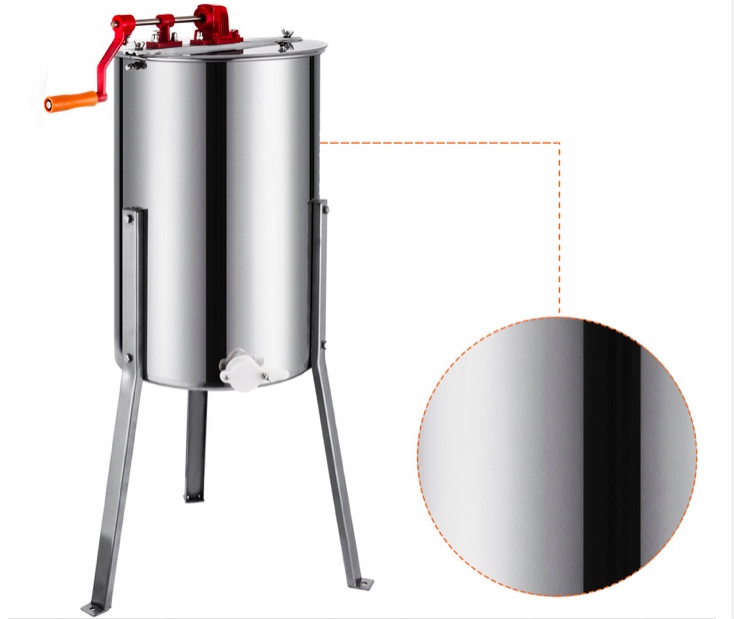 - Медогонка оснащена двумя прозрачными крышками из плексигласа, которые защищают от попадания мусора при опорожнении меда.