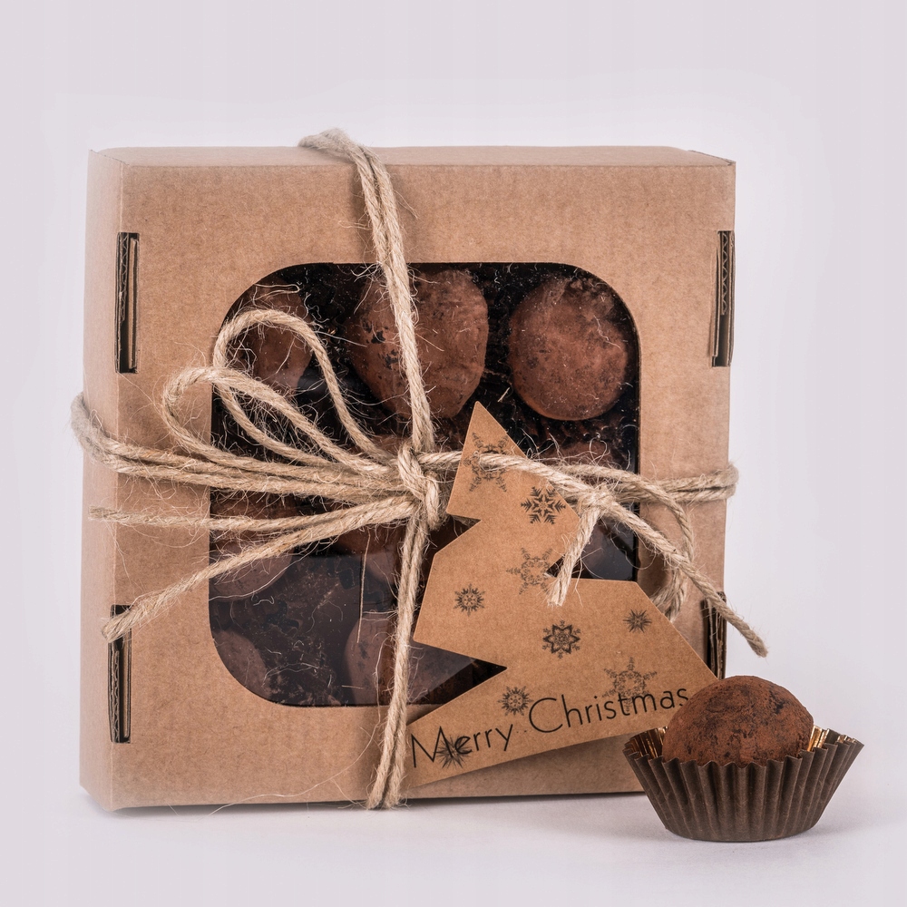 Мы предлагаем медовые трюфели в нескольких вкусах, которые прячем в оригинальную коробку. это само по себе украшение.
