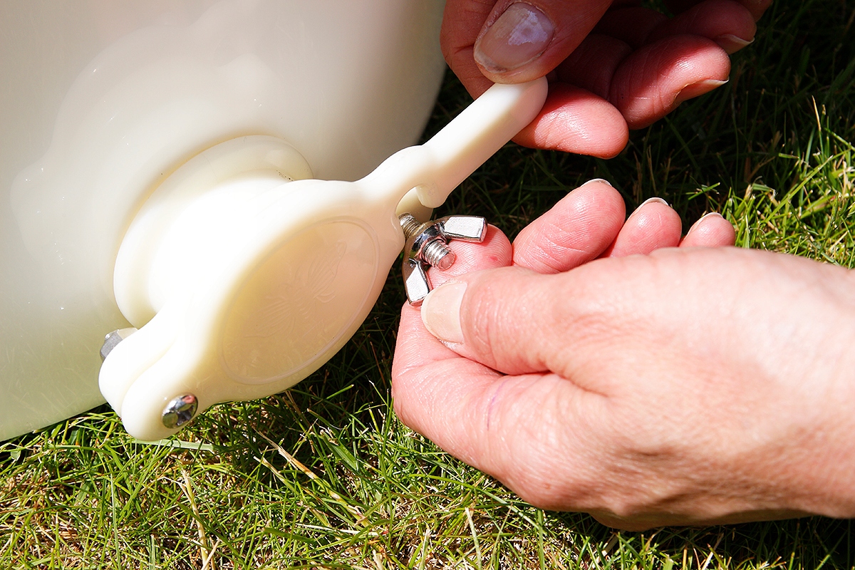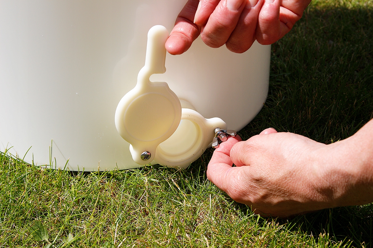 Ведро оснащено откидным клапаном с диаметром отверстия 36 мм, что позволяет сливать даже густые осадки.