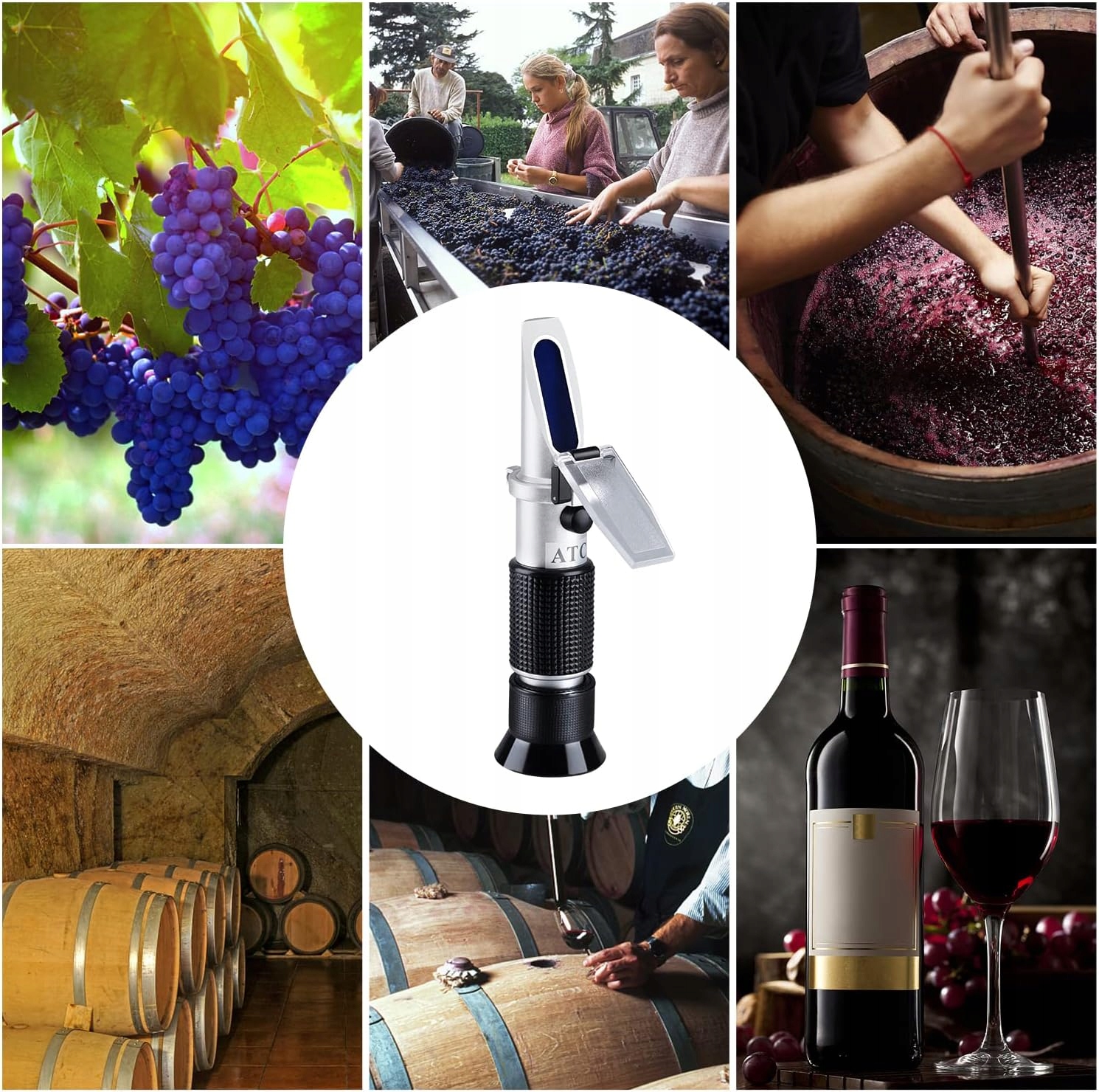 【Легкое тестирование】 , чтобы вы могли легко проверить качество своего винограда и сделать лучшее вино! Рефрактометр в основном используется для обнаружения содержания сахара в оригинальном виноградном соке, а затем определить потенциальное содержание алкоголя в винограде в ферментированном виноградном соке.