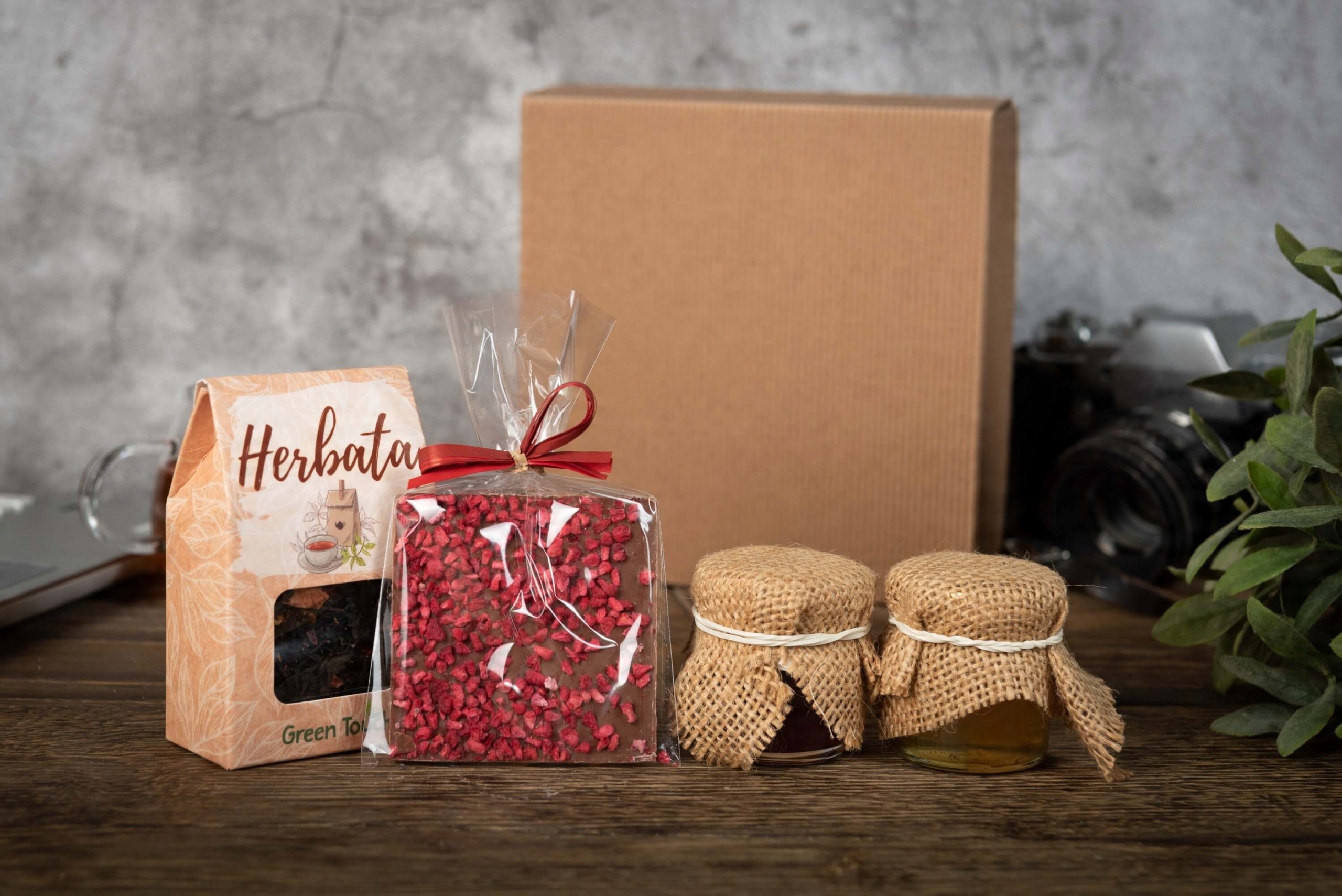 Натуральный подарок в виде хорошего чая, меда, варенья и шоколада ручной работы