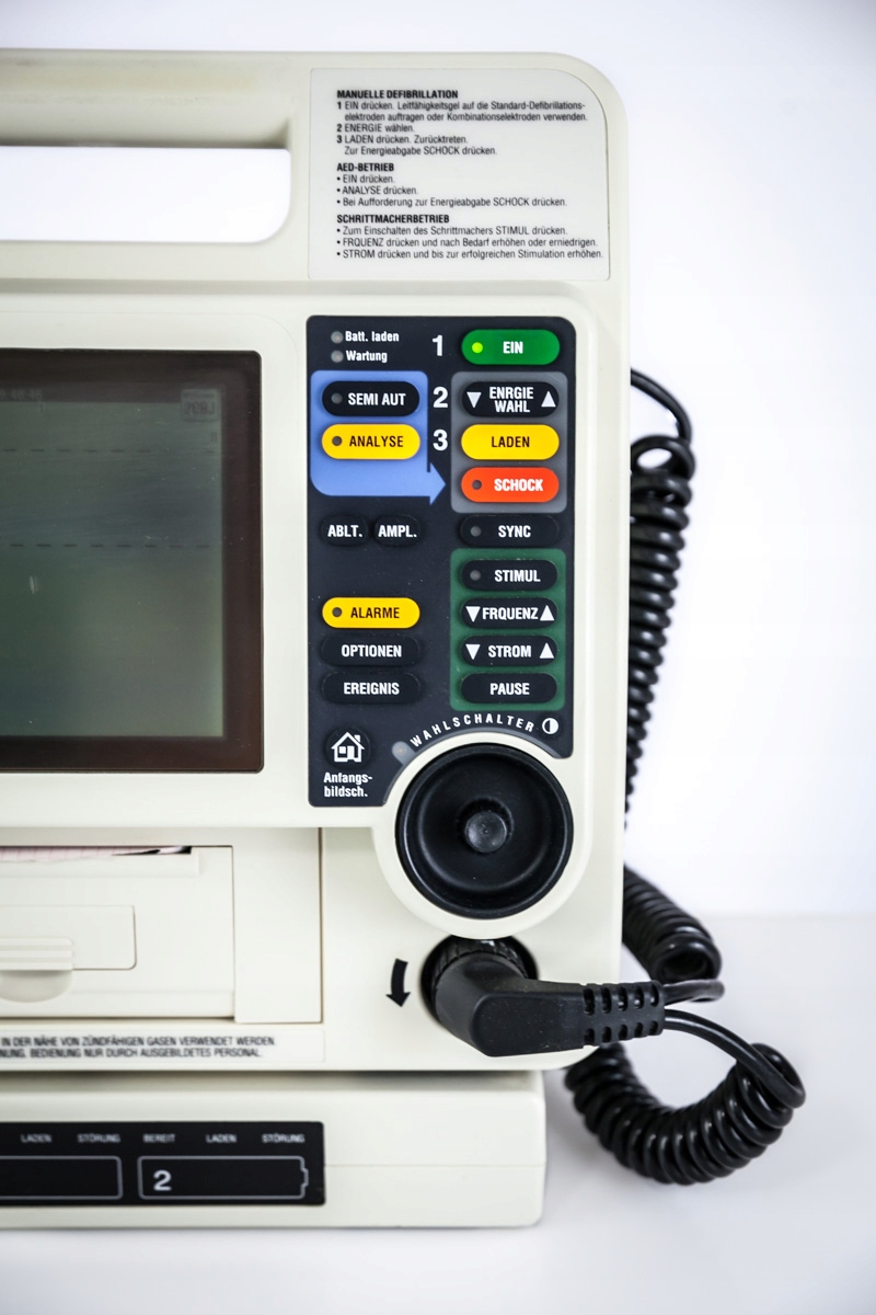 используется дефибриллятор и показывает следы использования, полностью функциональные. Техническое состояние, видимое на фотографиях.