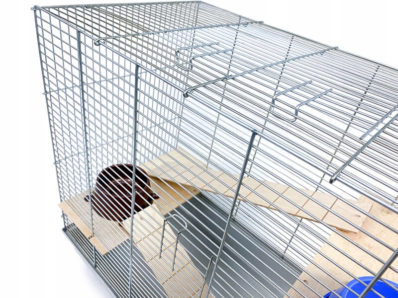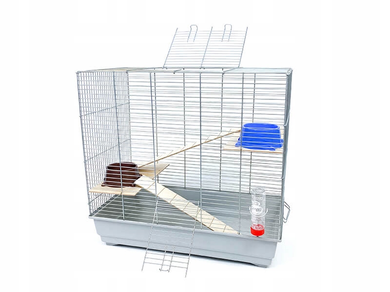 Представленная клетка посвящена крысе, шиншилле, дегу, белке или хорьку. Он изготовлен из прочной проволоки, оцинкованной. Дверца вверху довольно большая, обеспечивающая удобный доступ внутрь клетки. Входная дверь, немного меньшего размера, является удобной альтернативой для мелких работ в клетке. Лоток для мусора изготовлен из безопасного для животных материала и сертифицирован. Клетка очень эстетична и добротна. Клетка складная.