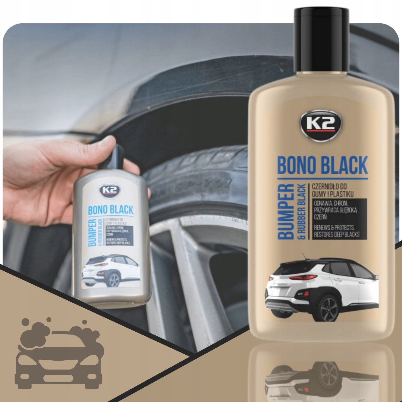 K2 BONO BLACK – превосходный продукт для регенерации всех черных пластиковых элементов кузова, шин и уплотнителей.