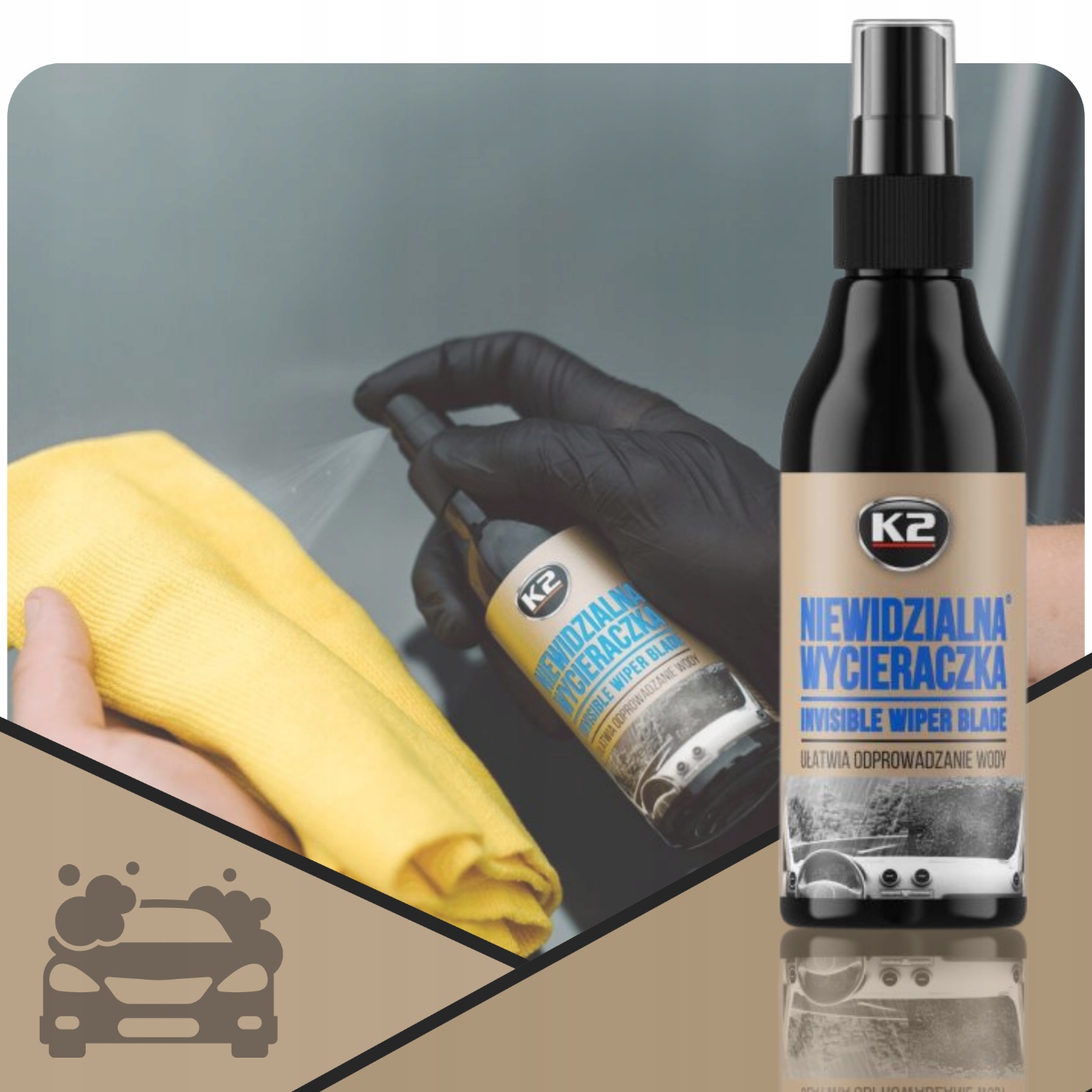 K2 INVISIBLE WIPER — жидкое гидрофобное покрытие, облегчающее слив воды с лобового стекла при движении под дождем.