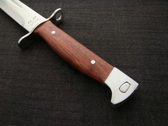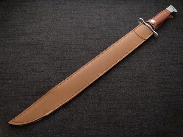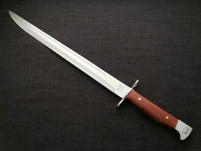 Одна из самых длинных моделей этого знаменитого штыка – он имеет полный -тан<конструкция /б>, был изготовлен из одного куска стали № 420. Деревянная обшивка. На конце рукоятки имеется механизм, позволяющий прикрепить к оружию штык. В комплект входит чехол из экокожи, который можно носить на поясе. Штык новый и острый.